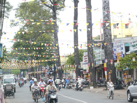 Trang trí cờ hoa trên đường Thuận Kiều mừng Phật đản
