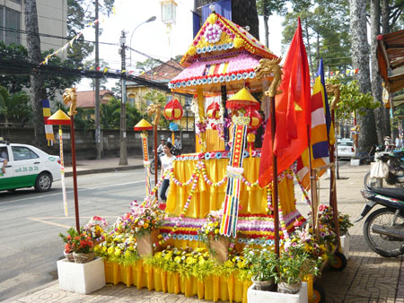 Tôn trí xe hoa trên đường phố suốt mùa Phật đản