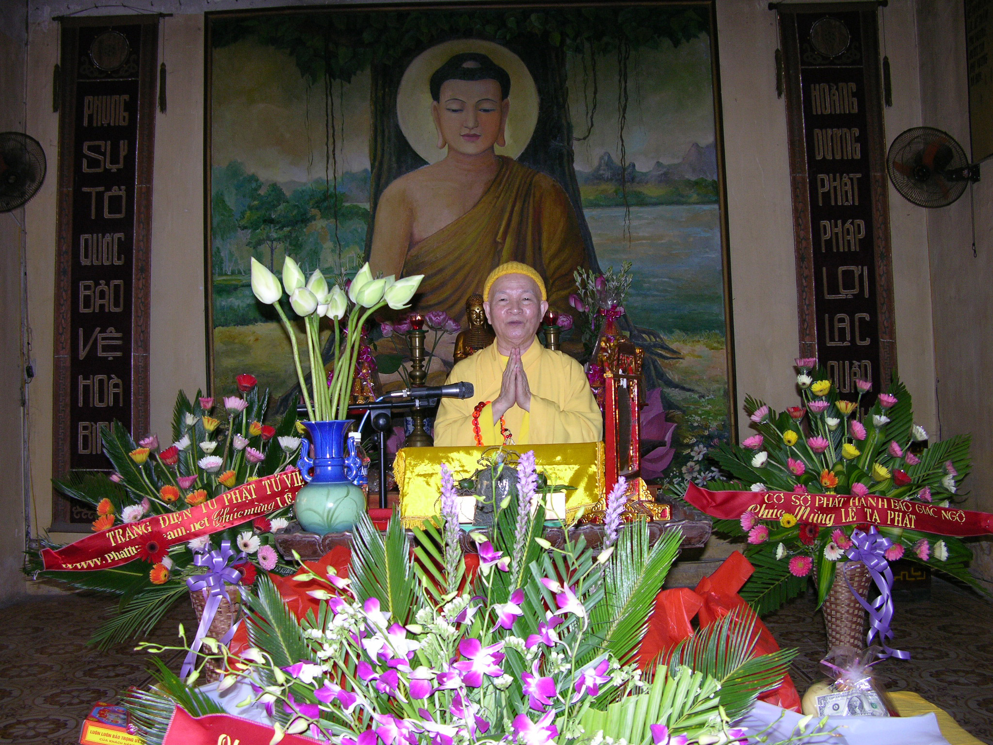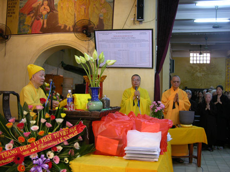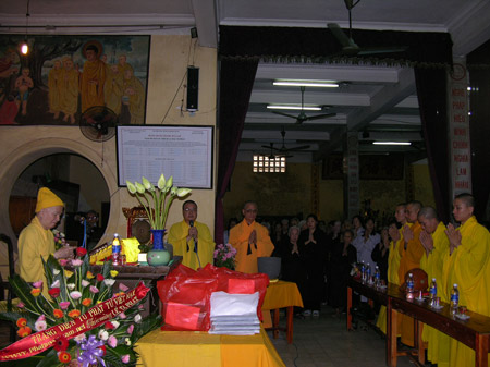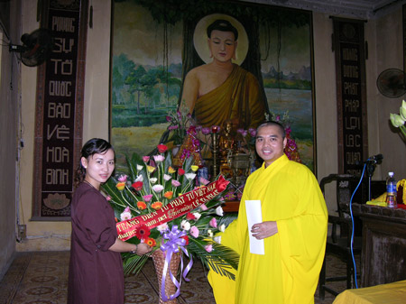 Trị sự viên trang tin điện tử Phật tử Việt Nam tặng hoa lễ tạ pháp tại Trường hạ Quán Sứ