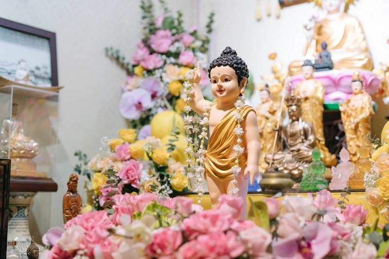 Mặc dù trong một không gian nhỏ, nhưng với sự chăm chút từng chi tiết, từ màu màu sắc hoa văn, cho đến cách tôn trí hình ảnh đức Phật hợp lý, đã làm cho không gian lễ đài thu nhỏ của đức Phật sơ sinh tại tư gia vô cùng trang nghiêm và gần gũi với đời sống tâm linh người trẻ.