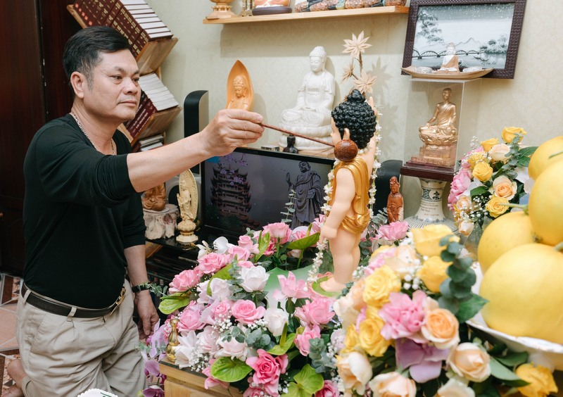 Hưởng ứng tinh thần tôn kính đức Phật bằng việc thiết lập lễ đài Phật sơ sinh tại tư gia, BTV Thành Trung – Phó Thư ký Thường trực trang nhà PTVN cùng huynh đệ đồng tu có một mùa Phật đản thật ấm cúng và đạo vị bên nhau trong tình huynh đệ tại Hải Phòng.