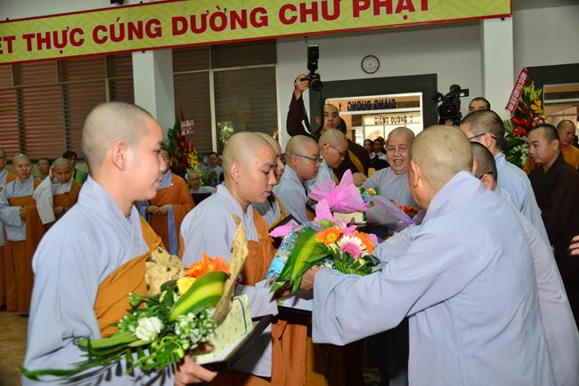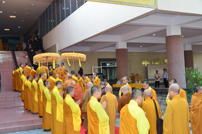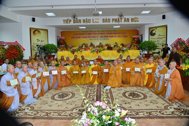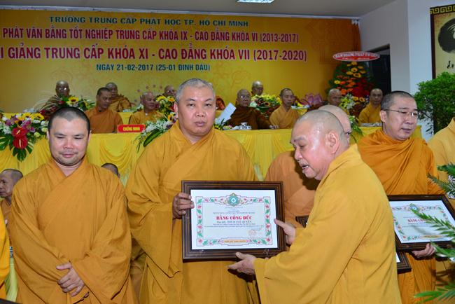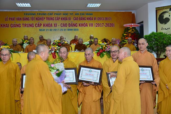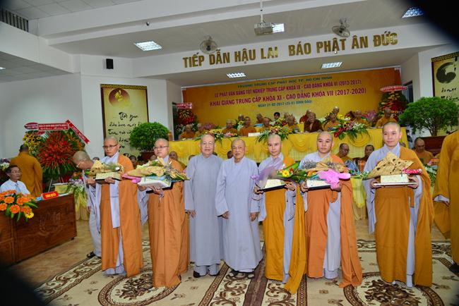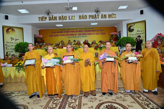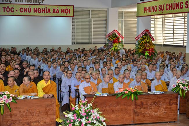 Quang lâm chứng minh và tham dự buổi lễ có HT.Thích Thiện Pháp, Phó Chủ tịch Thường trực HĐTS, Phó Hiệu trưởng trường; HT.Thích Giác Toàn, Phó Chủ tịch HĐTS, Phó Thường trực Ban Giáo dục Tăng Ni T.Ư; HT.Thích Thiện Tánh, Phó Chủ tịch HĐTS, Phó ban Thường trực BTS PG TP.HCM; HT.Thích Thiện Tâm, Phó Chủ tịch HĐTS, Phó Hiệu trưởng; HT.Thích Từ Thông, UV HĐTS, Hiệu trưởng trường; HT.Thích Tịnh Hạnh, UV HĐTS, Phó BTS GHPGVN TP.HCM; HT.Thích Tấn Đạt, TT.Thích Quang Thạnh – đồng Phó văn phòng 2 T.Ư; TT.Thích Thiện Quý, Chánh Thư ký BTS PG thành phố cùng chư tôn đức lãnh đạo BTS PG 24 quận huyện; ban giảng huấn, bổn sư, y chỉ sư cùng chư tôn đức Tăng Ni trụ trì các tự viện trên địa bàn và các tỉnh thành.