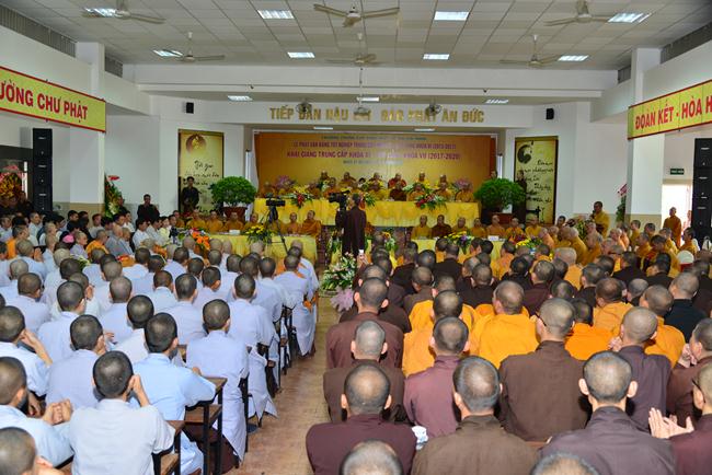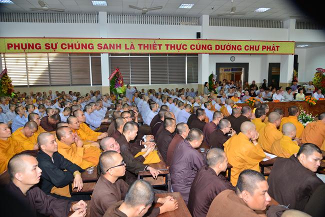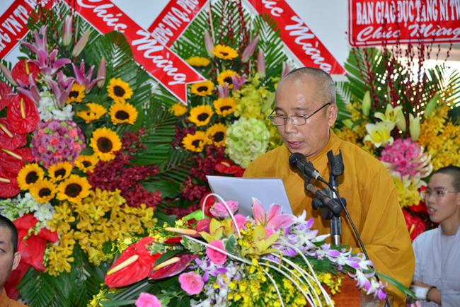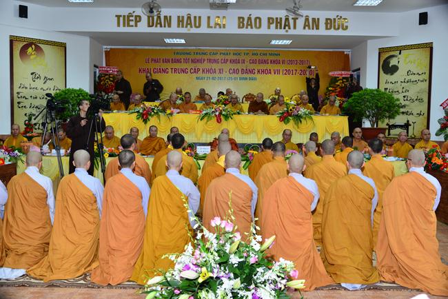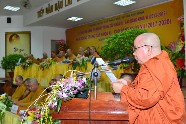 HT.Thích Từ Thông đã chỉ định HT.Thích Thiện Pháp, Phó Hiệu trưởng nhà trường phát biểu khai mạc; qua đó cho biết – suốt chặng đường 30 năm qua, Ban GDTN thành phố, tiêu biểu là Ban Giám hiệu Trường Trung cấp Phật học đã hoàn thành công tác đào tạo 8 khóa Trung cấp và 5 khóa Cao đẳng chuyên khoa; cung cấp nguồn nhân lực cho Giáo hội và Phật giáo các địa phương.