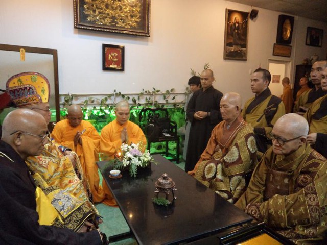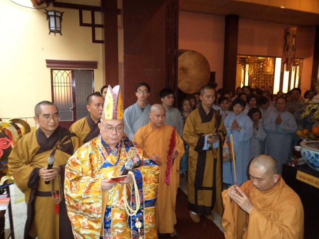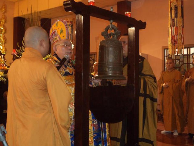 Theo chương trình, trong buổi sáng, chư Tôn đức đã Niêm Hương – Bạch Phật – Khai Chung Bảng. Tiếp đó là Lễ Thượng Phan, Cúng Dường Trai Tăng.