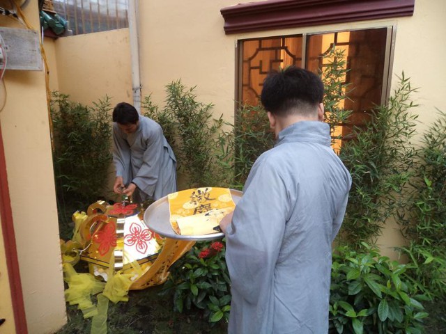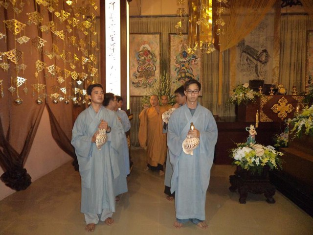 Buổi chiều là thời khóa Niệm Phật, lễ Chiêu U, lễ Phóng Liên Đăng.