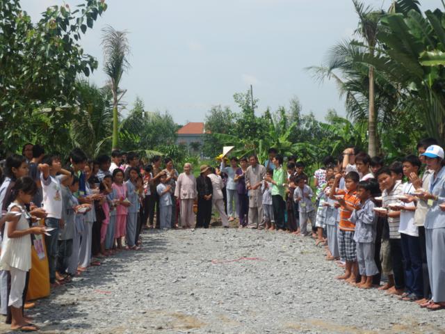 Tiếp đó, mỗi gia đình tu sinh được thể hiện mình bằng việc bày bán các quầy thực phẩm, mời gọi khách hàng, tất cả như một phiên chơ quê hương Long An thu nhỏ, bình dị mà thân thương, như những con người chân chất, hiền hoà nơi mãnh đất này.