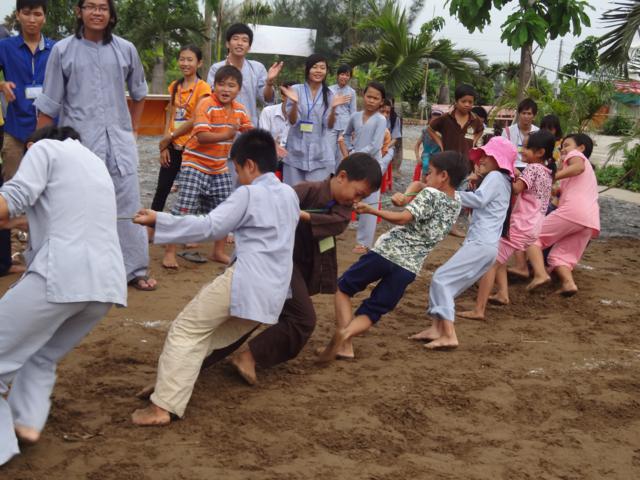 Sau đó, các bạn trẻ được tham gia cùng đồng đội với các trò chơi dân gian hào hứng, sôi nổi, thưởng thức phiên chơ quê hương do chính các em bày bán, hình ảnh đi khất thực của chư tôn đức, tái hiện lại khung cảnh tăng đoàn đi khất thực thuở xưa. Nhằm tạo duyên lành cho các tu sinh với Phật pháp, tập bố thí cúng dường, gieo duyên với Tam bảo. Các bạn trẻ thành kính dâng lên những thức ăn để cúng dường chư tăng bằng cả trái tim thành kính. Duyên lành với Tam Bảo được kết nối từ đây.