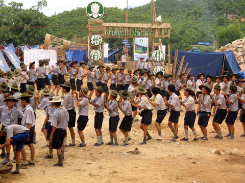 Tiếp đó là cảnh toàn trại với hàng ngàn áo lam.. quần tụ thành nhiều vòng tròn lớn nhỏ.. sinh hoạt giao lưu, tiếng cười tiếng hát vang dậy…Trong Chánh điện chùa Linh Ứng cũng đã diễn ra Hội thảo Huynh trưởng ngành Thiếu với chủ đề “Biện pháp duy trì và phát triển ngành thếu một cách vững bền”. Sân chùa lại được điểm tô thêm những quầy lưu niệm tự phát làm cho hội trại như một lễ hội lớn. Khách tham quan dường như cũng muốn hòa chung vào không khí tưng bừng này.