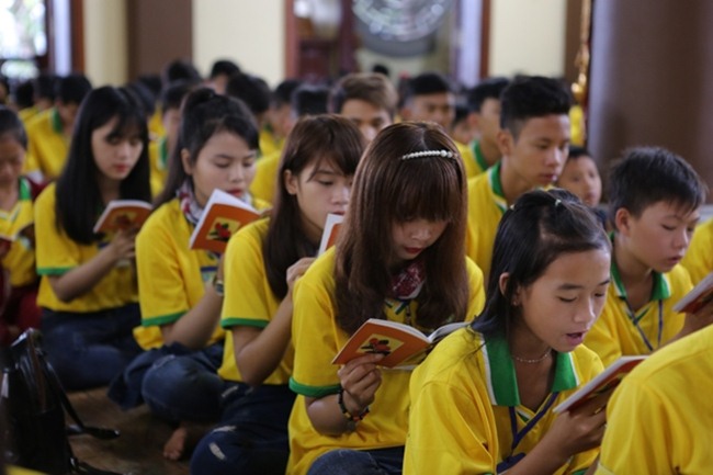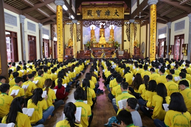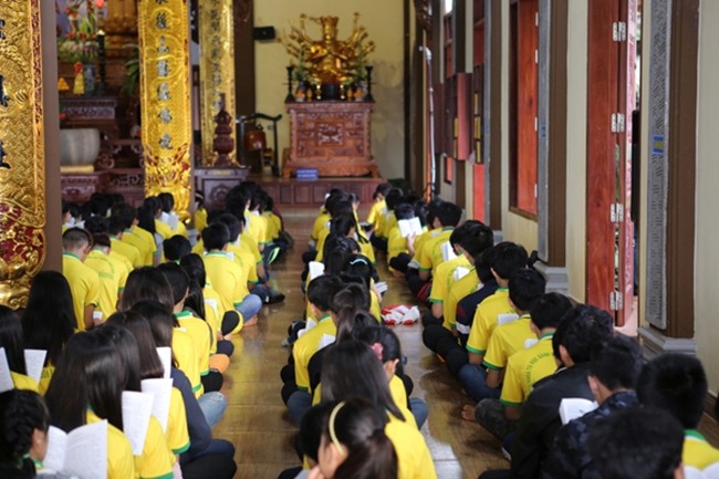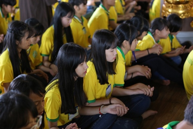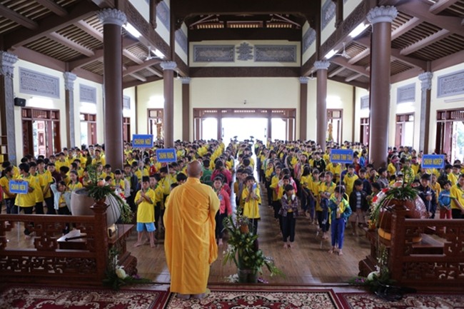 Dù đang ngon giấc sau một ngày tham gia các hoạt động theo thời gian biểu của khóa tu, nhưng khi nghe hiệu lệnh báo thức thì các em đều cố gắng thức dậy vào lúc 5 giờ sáng để chuẩn bị khóa lễ do Đại đức Thích Quảng Hiền – Trưởng ban Tổ chức trực tiếp hướng dẫn.