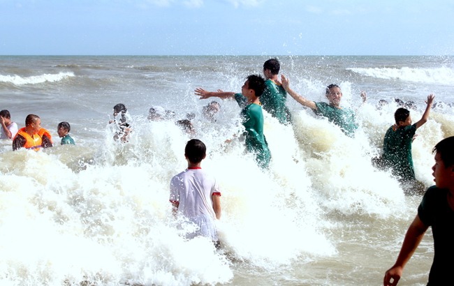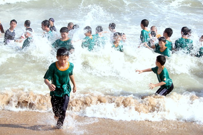 Liền đó, theo tiếng còi, nhiều bước chân trần chạy thoăn thoắt ra bãi biển. Được vận động và hít thở không khí trong lành của biển, tâm hồn các em rộng mở như muôn trùng sóng vỗ. Điều đó được biểu hiện trên nét mặt và nụ cười thân thiện với nhau.