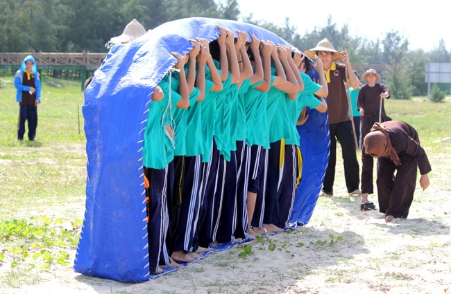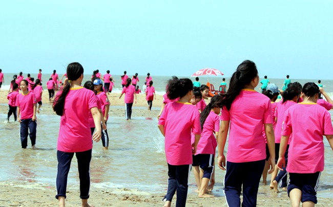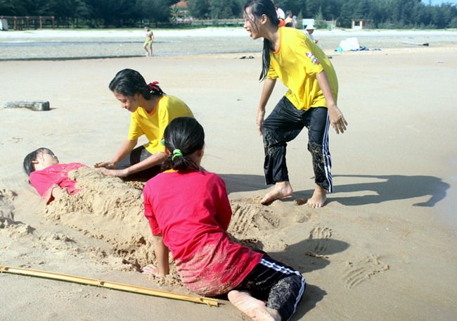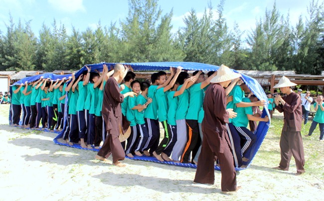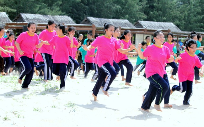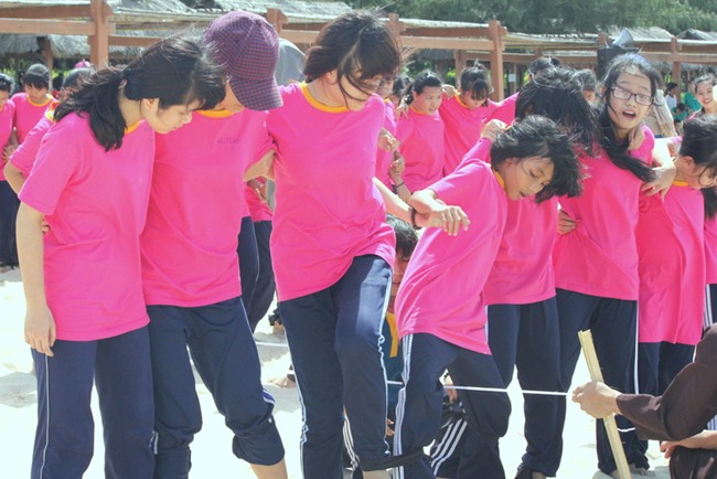 Đến đây, các em được dịp hòa mình với những cảnh quan sinh thái trong lành, mát mẻ và thực hiện kỹ năng qua cuộc thi các trò chơi vận động trên biển.