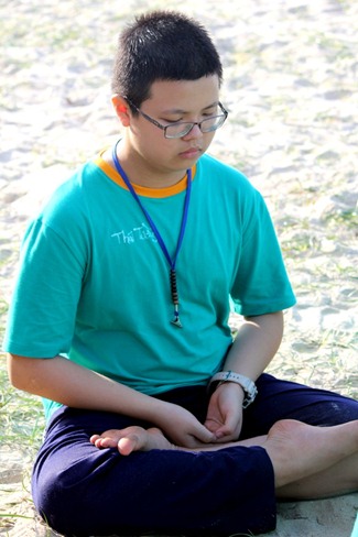 Tiếp theo, các em ngồi Thiền trên biển 30 phút. Những cái bóng nhỏ ngồi im thin thít trải dài trên bãi cát, hình ảnh ấy không gì đẹp hơn và cũng đem đến cho chúng ta sự suy nghiệm về những công năng thiết thực của thiền trong đời sống, mà nếu như ai cũng biết tu thiền thì thế giới này tốt đẹp biết bao.