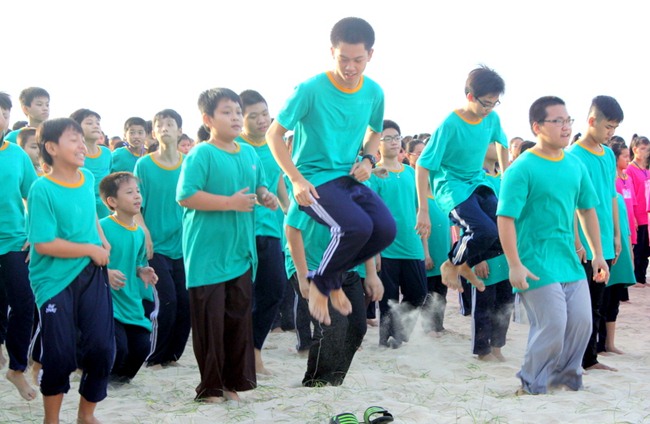 Sau đó, các em tập khí công và tham gia cuộc thi các trò chơi vận động trên biển. Chính những buổi học ngoại khóa này làm tăng thêm hứng thú học tập cho các em, giúp các em tự rèn kỹ năng sống cho bản thân, trong đó có kỹ năng làm việc nhóm, kỹ năng xử lý những tình huống khó khăn và rèn luyện nhiều đức tính khác như: tập chịu đựng nắng gió sóng nước, tập nhanh nhẹn, tháo vát, v.v…Ngoài ra, khi được tiếp xúc với môi trường biển, các em sẽ quen với biển cả, yêu thiên nhiên hơn.