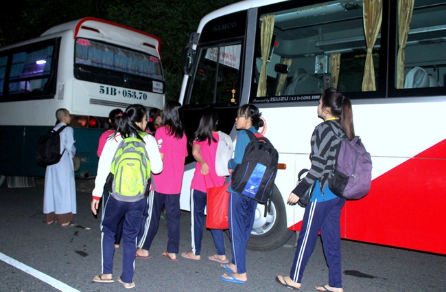 Đúng 4h00” sáng, chuyến đi biển xuất phát từ Thiền Tôn Phật Quang, các em sẵn sàng hành lý trên tay tập trung lên xe theo sự hướng dẫn của quý thầy trong BTC và các anh chị Huynh trưởng. Xe boon chạy trên đường tiến về biển Hồ Cốc.