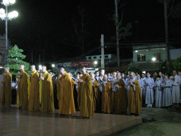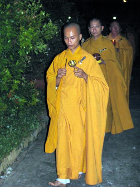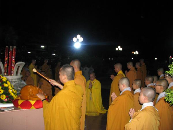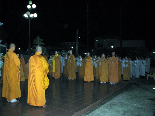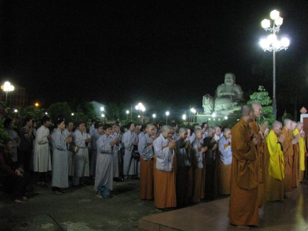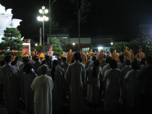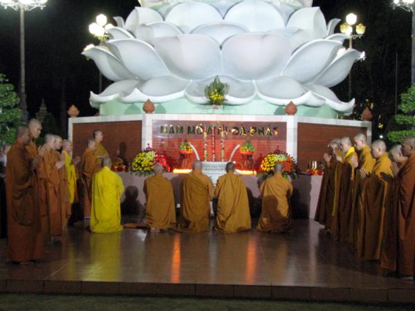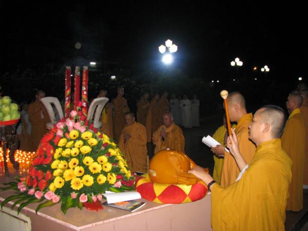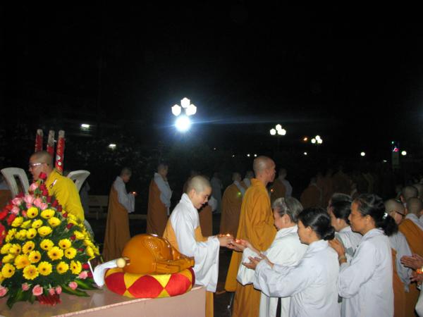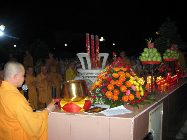 Chương trình diễn ra với nghi thức dâng hương của Chư tôn đức chứng minh, tụng kinh cầu nguyện quốc thái dân an và thắp hoa đăng nơi tôn tượng Phật A Di Đà, sau đó đi kinh hành khắp khuôn viên công viên Vĩnh Tràng.