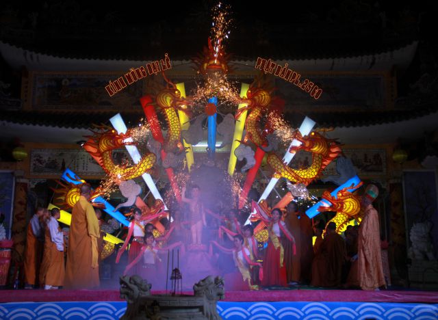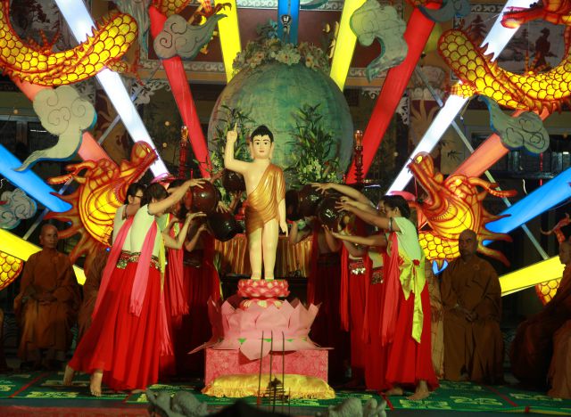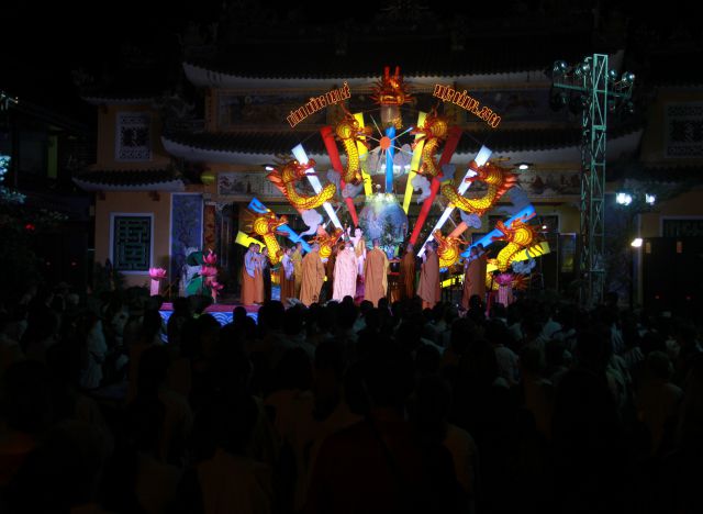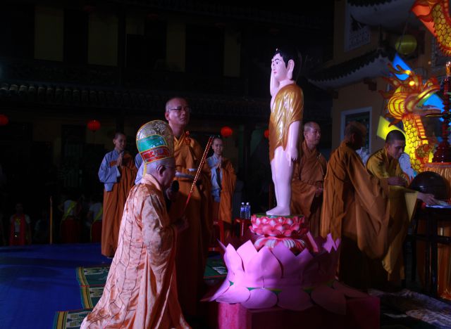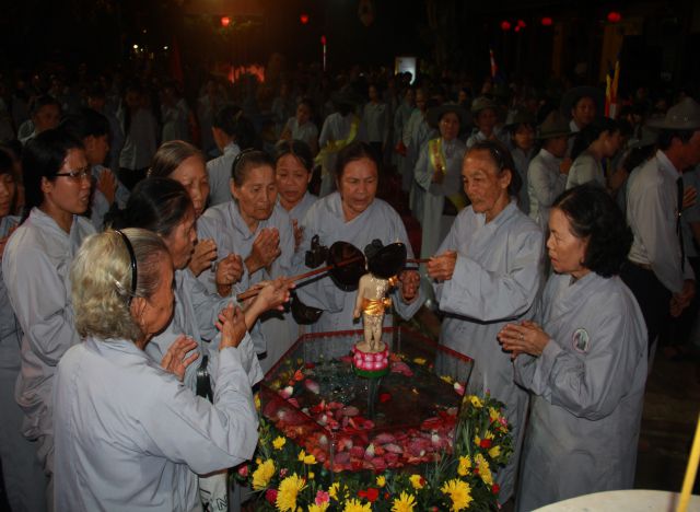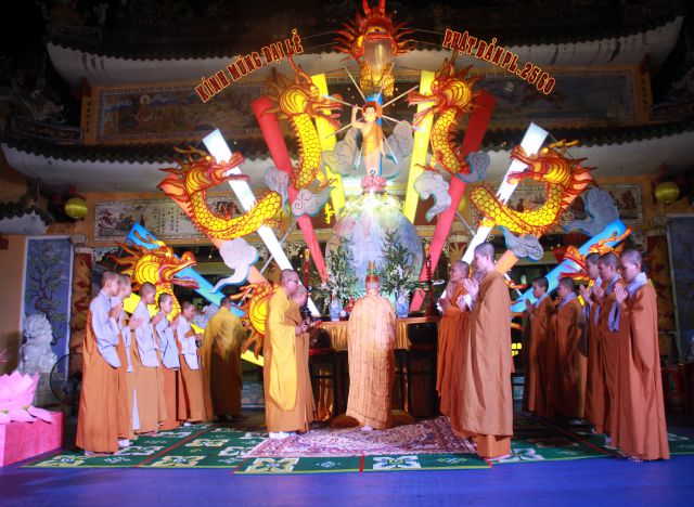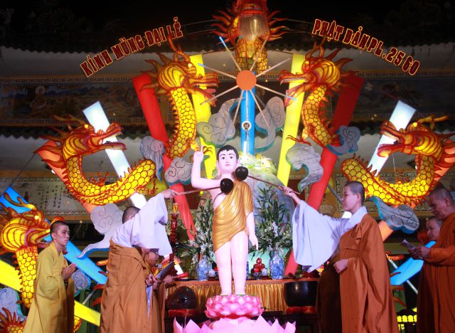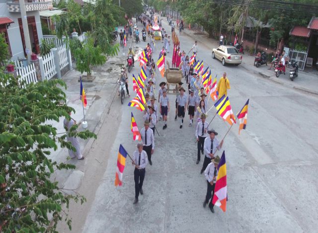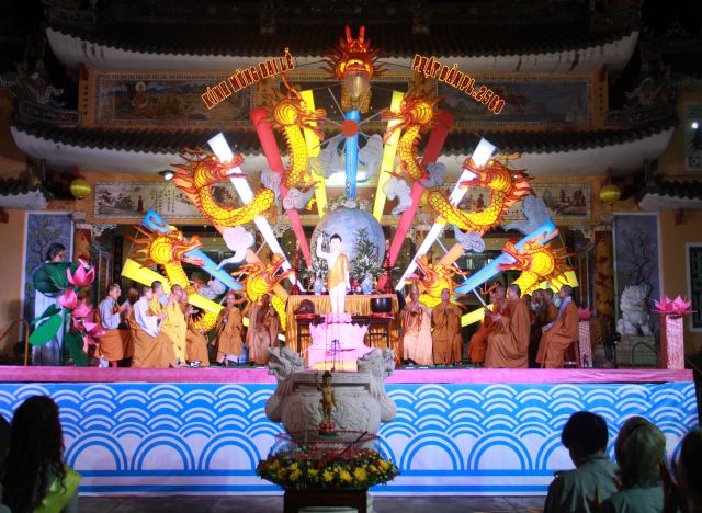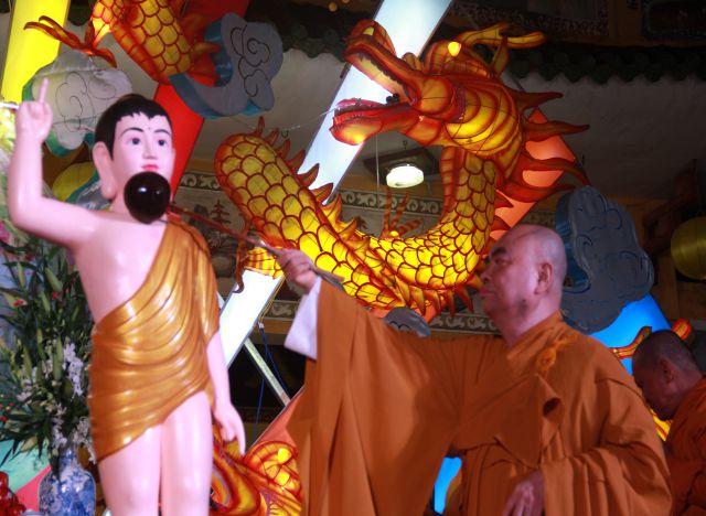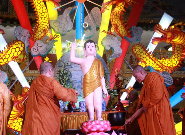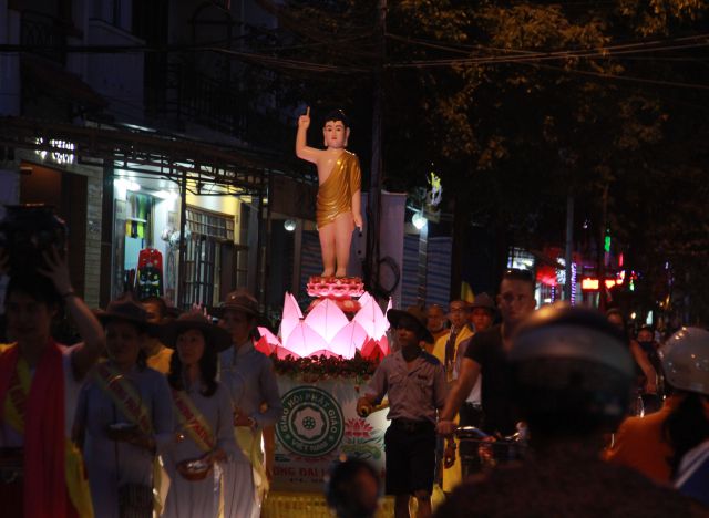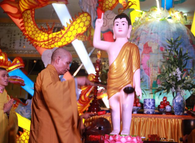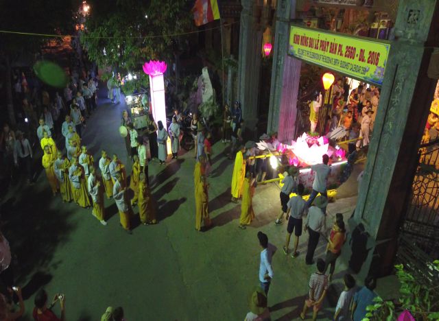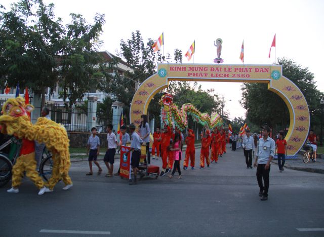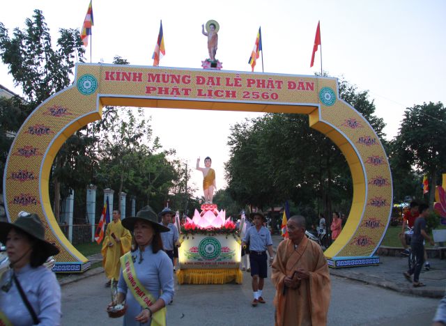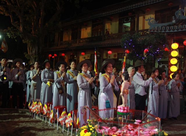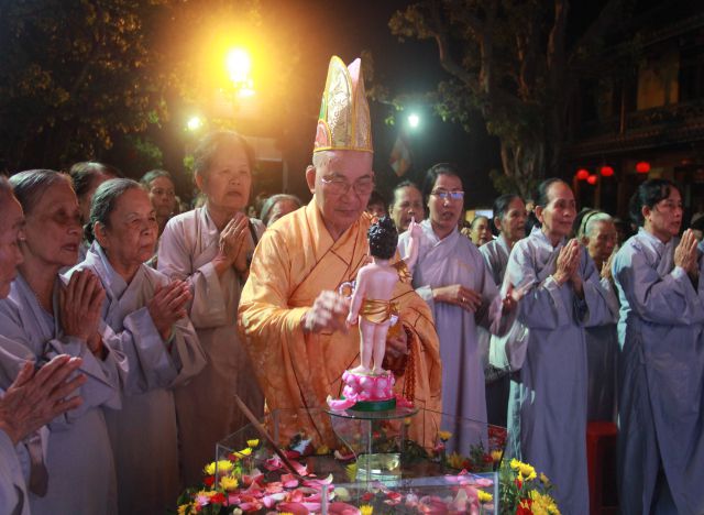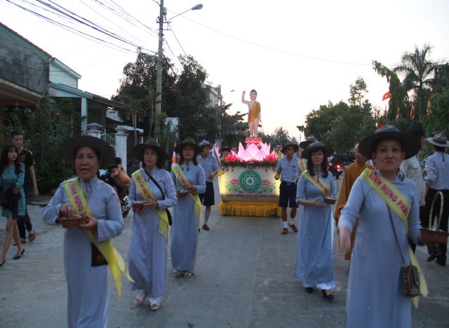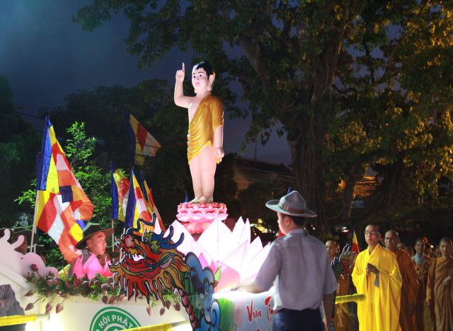 Theo đó, Vào lúc 18h tôn tượng Đản sanh đức Từ Phụ Bổ Sư Thích Ca Mâu Ni được trang nghiêm cung rước từ tổ đình Chúc Thánh về an trí tại lễ đài chính (chùa Pháp Bảo, TP.Hội An, tỉnh Quảng Nam).