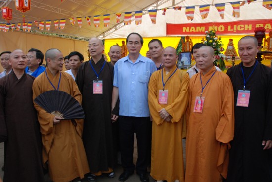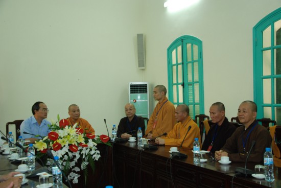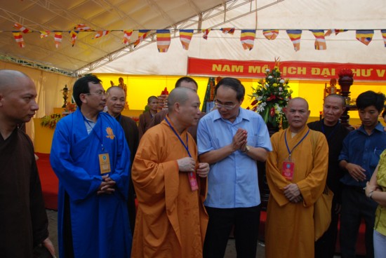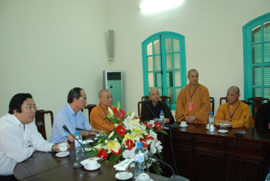 Đại đức Thích Tiến Đạt thông báo với Phó Thủ tướng về Đại lễ