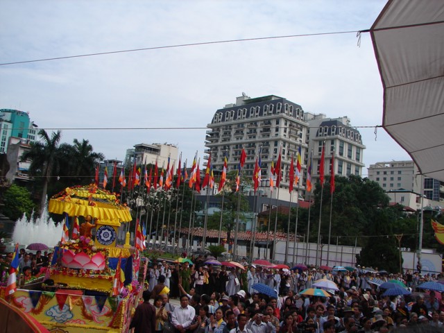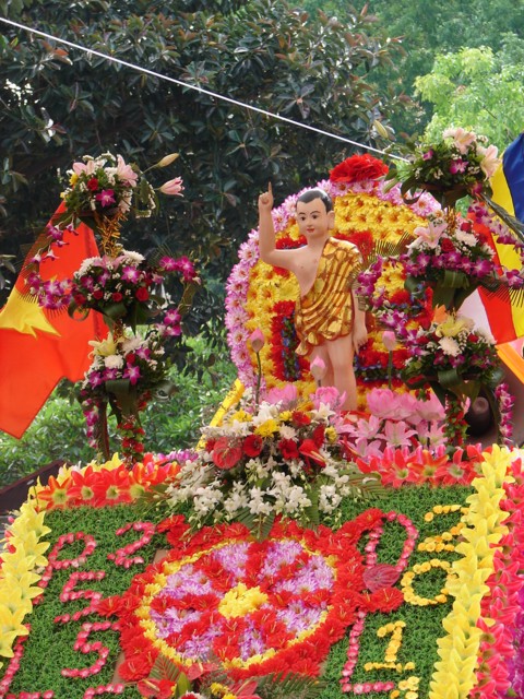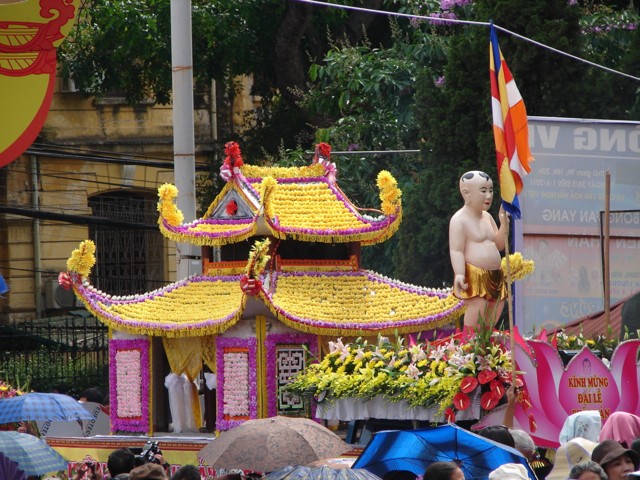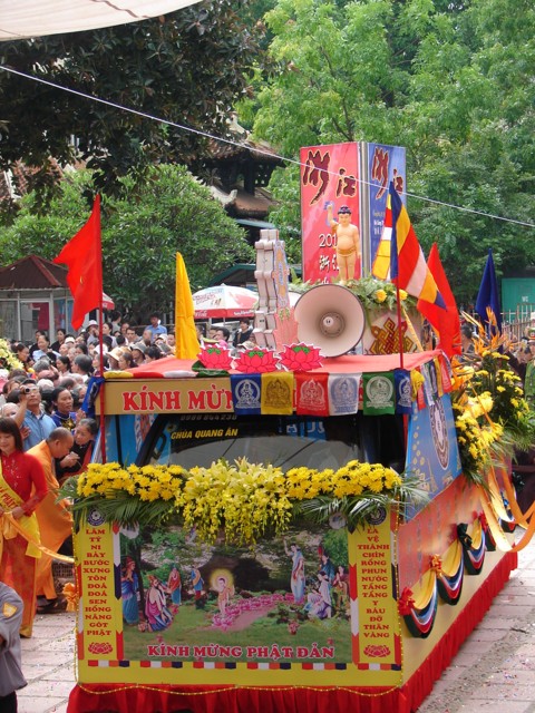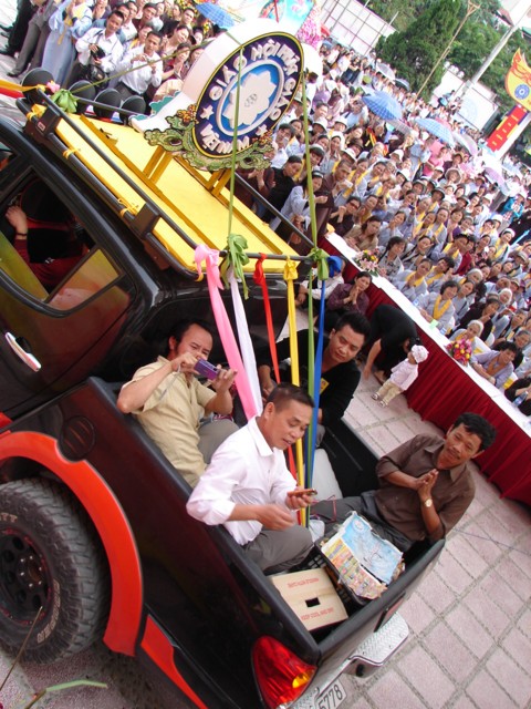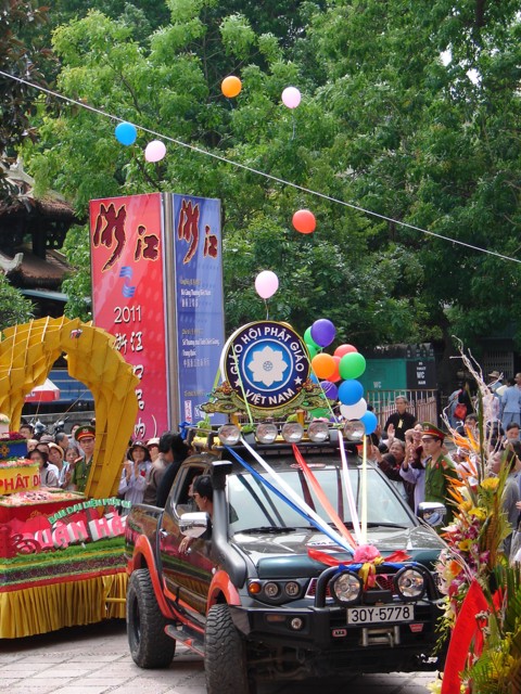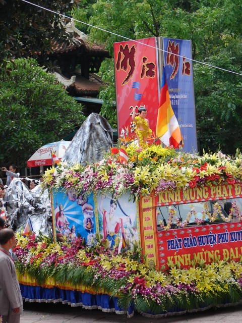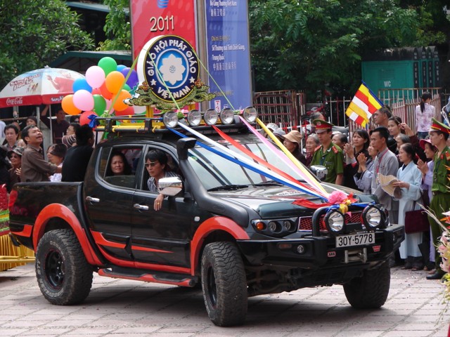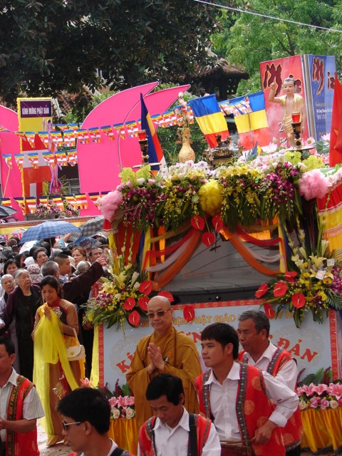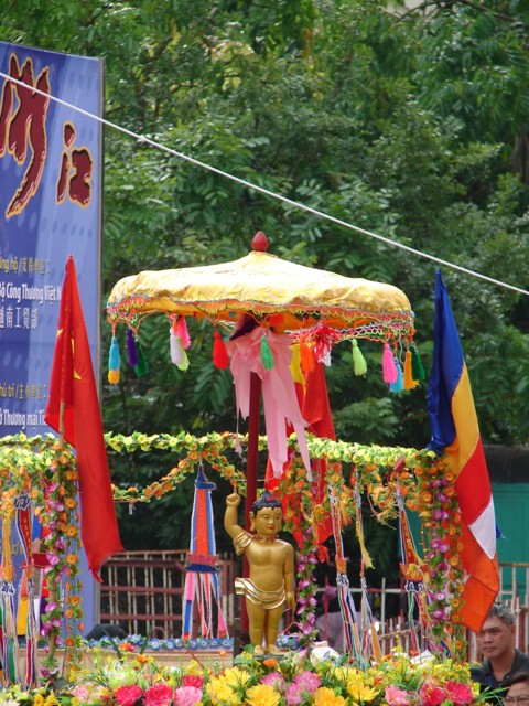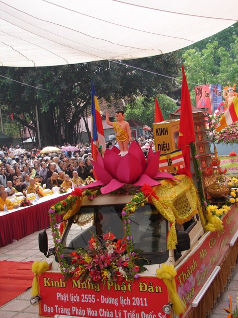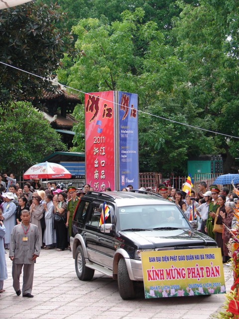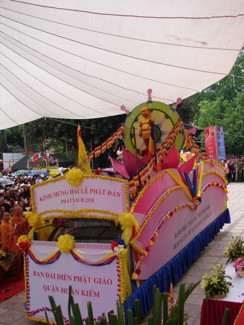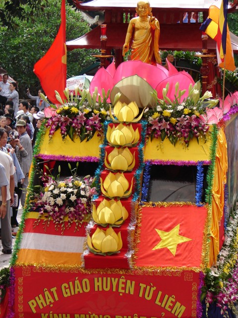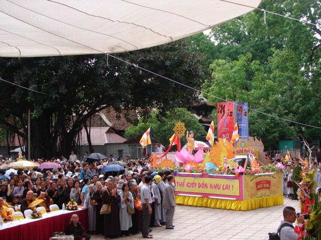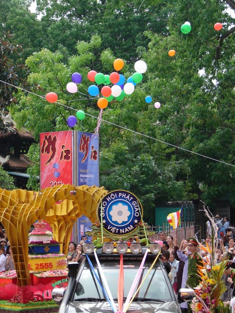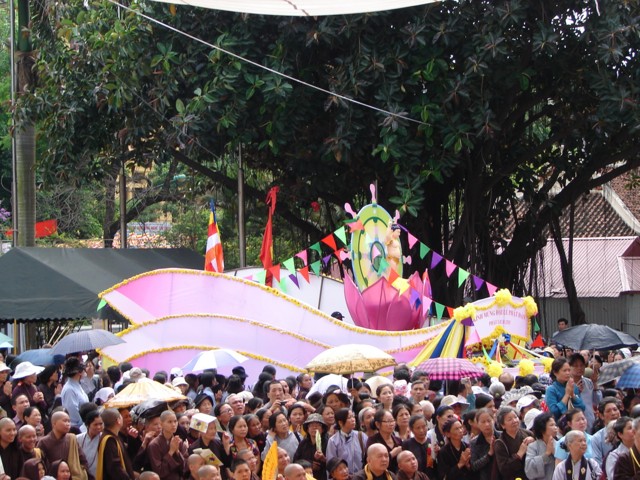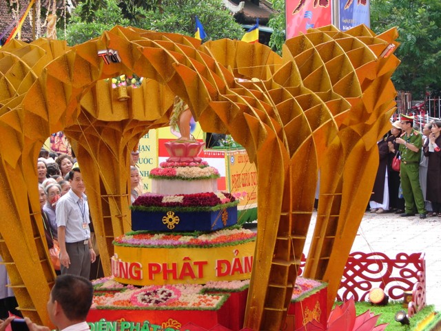 TT. Thích Thanh Nhã đích thân đi diễu hành xe hoa qua lễ đài