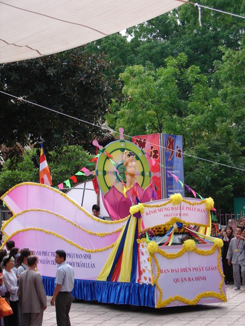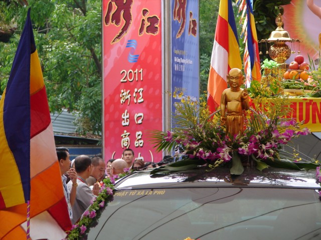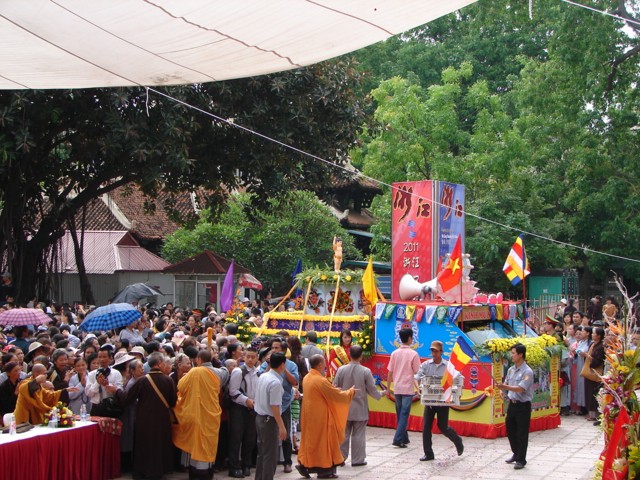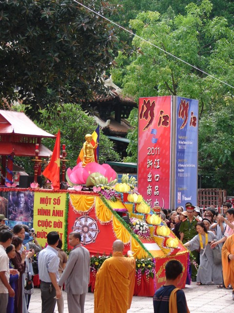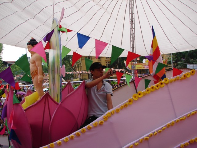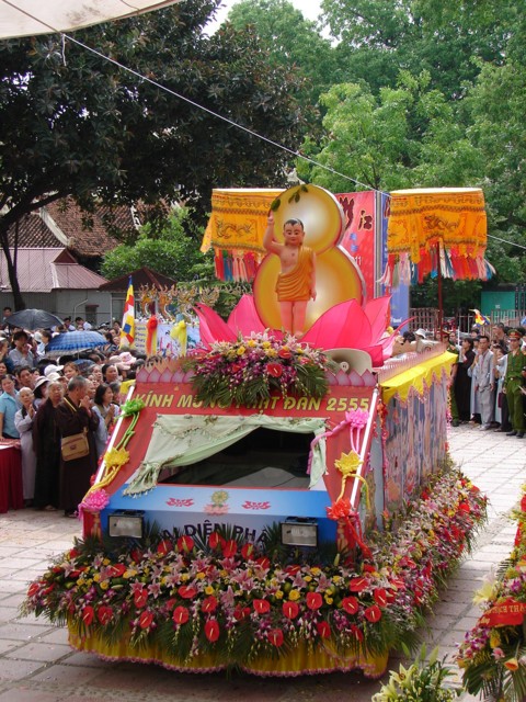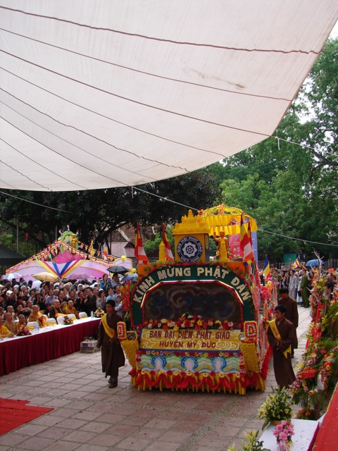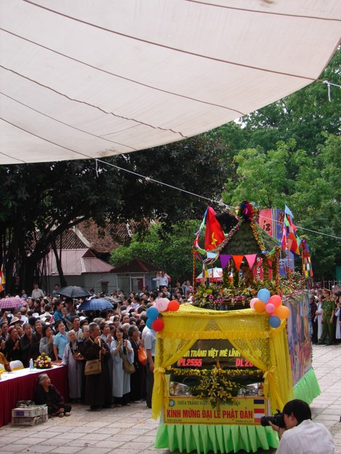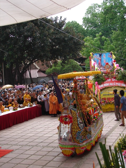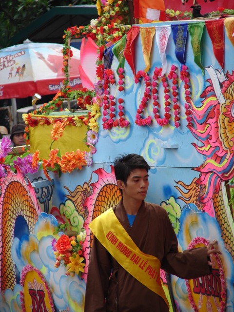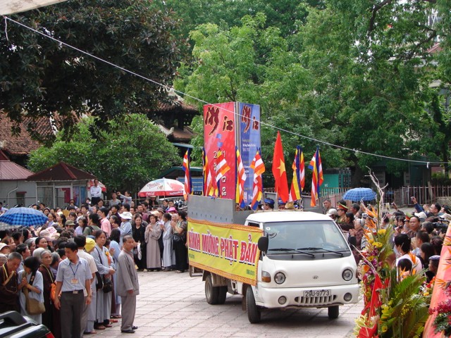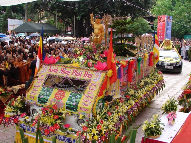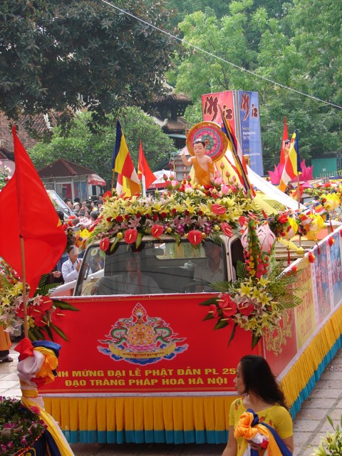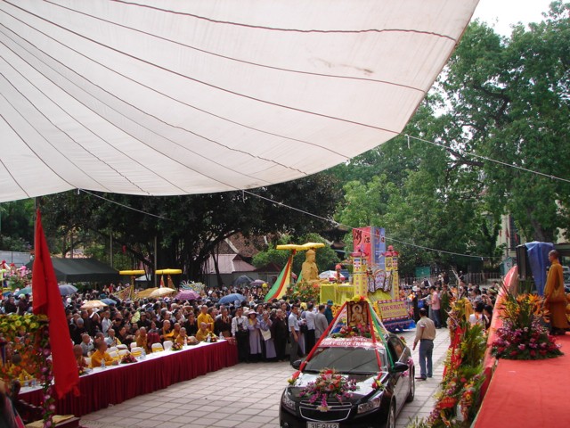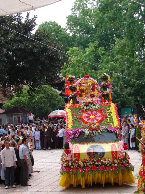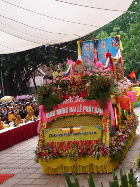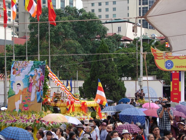 TT. Thích Thanh Nhã đích thân đi diễu hành xe hoa qua lễ đài