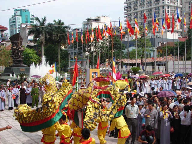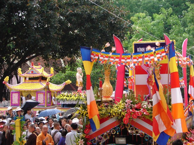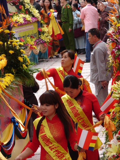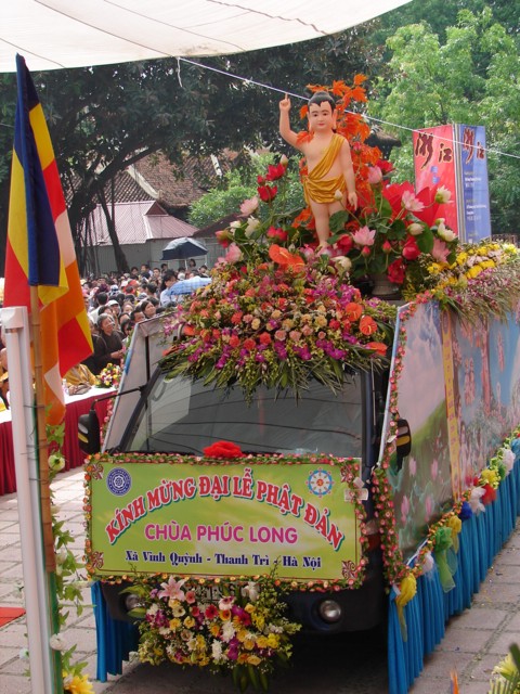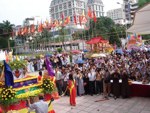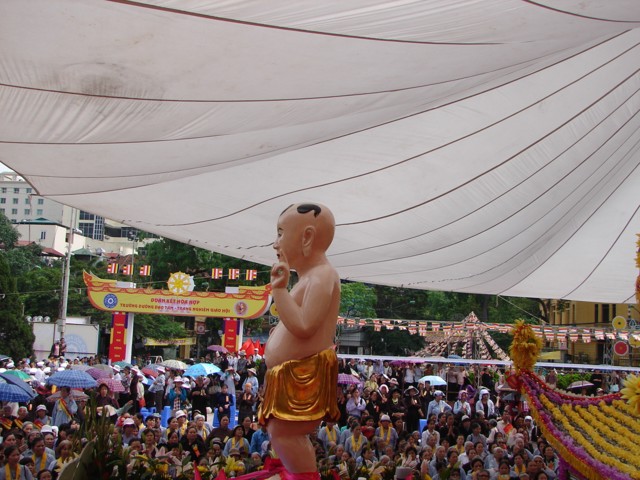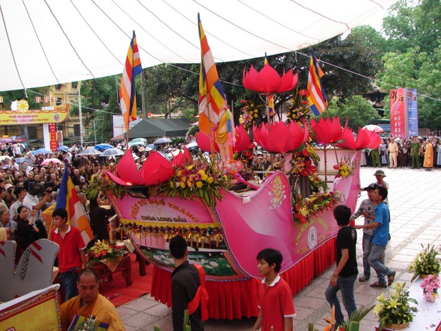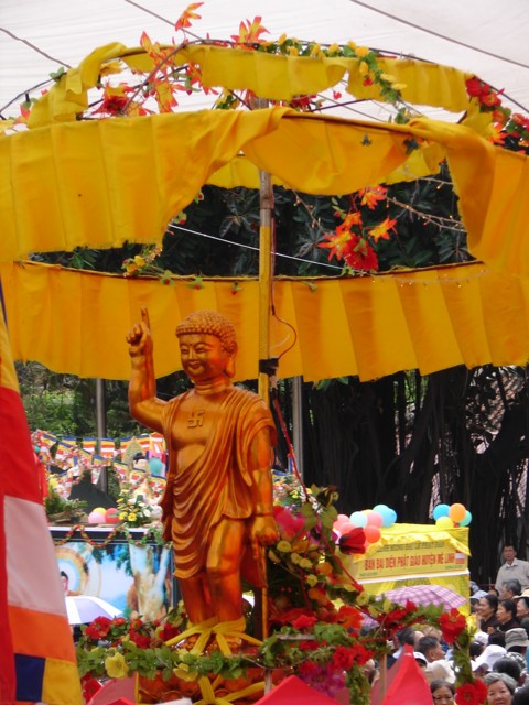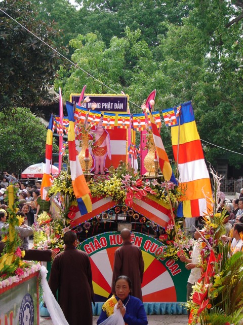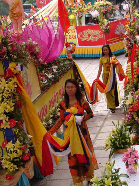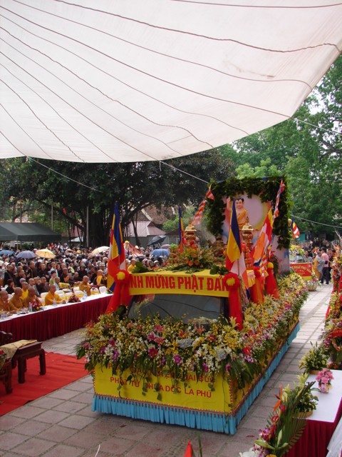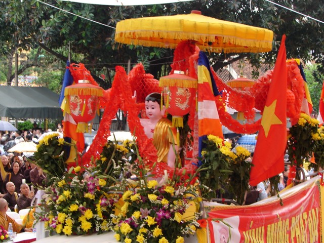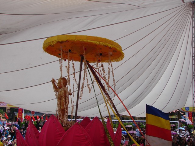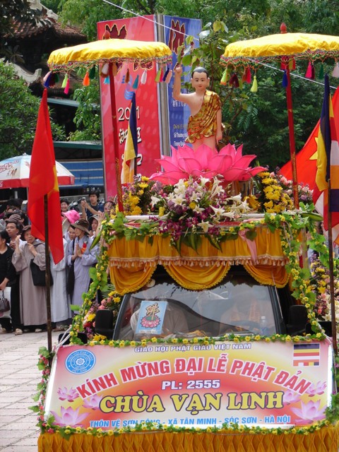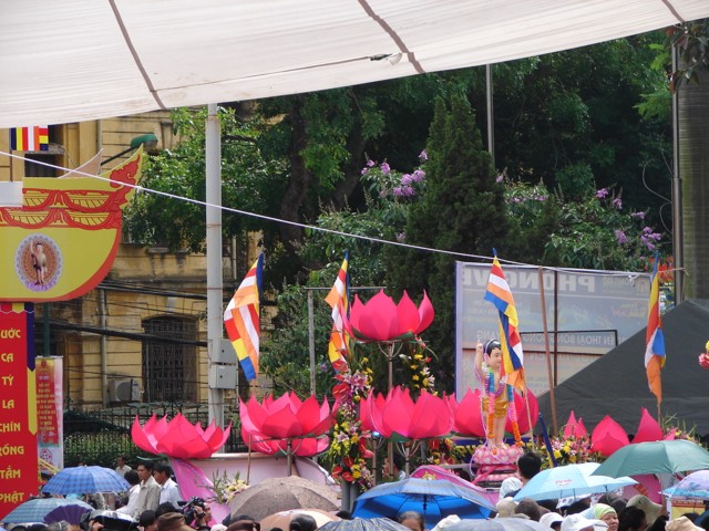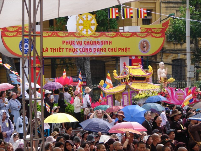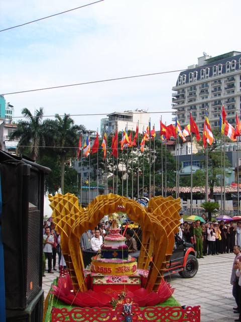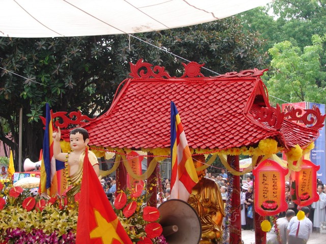 TT. Thích Thanh Nhã đích thân đi diễu hành xe hoa qua lễ đài