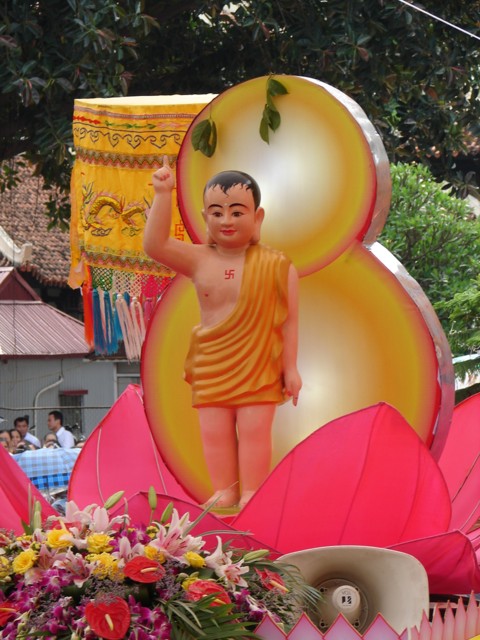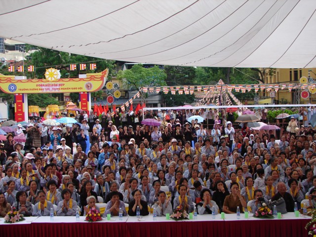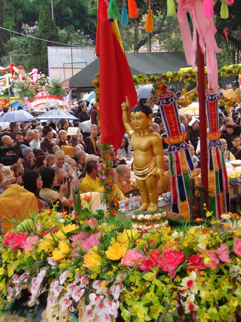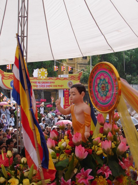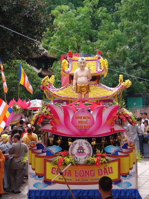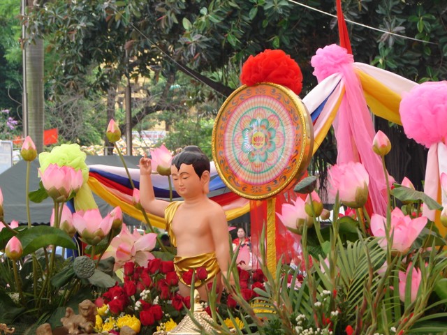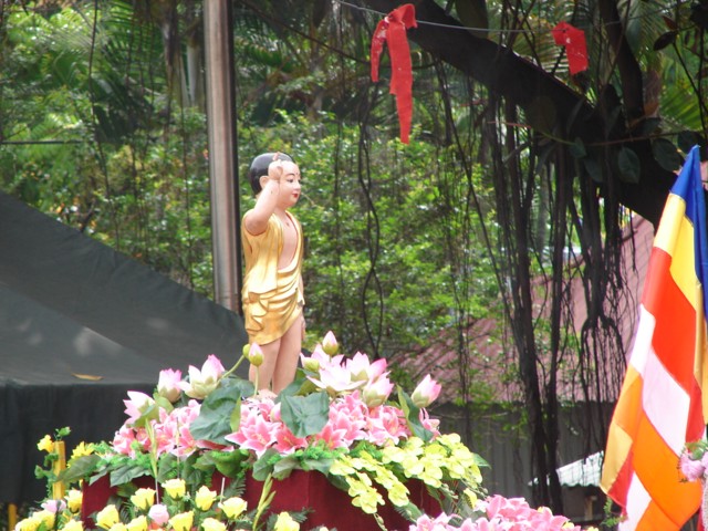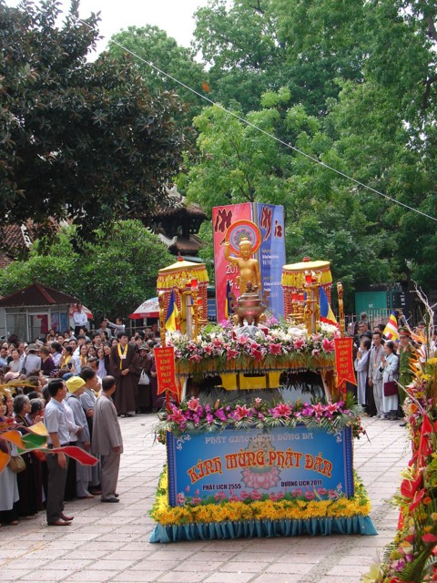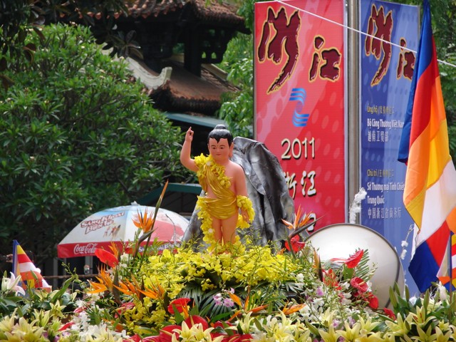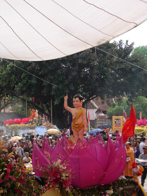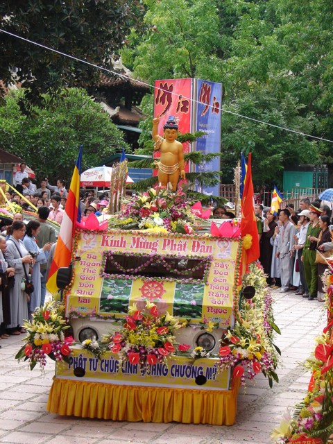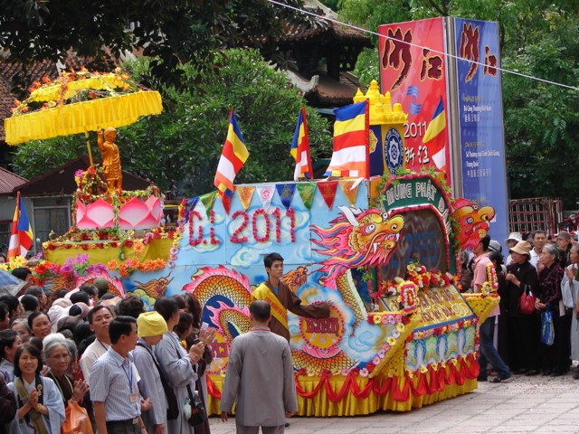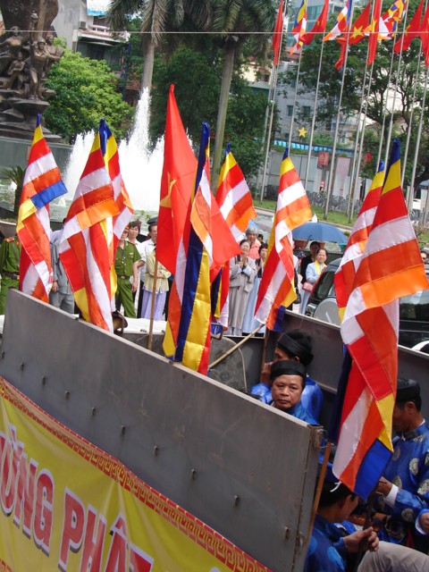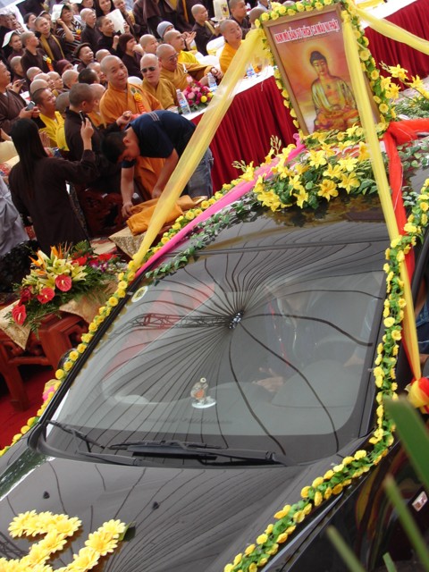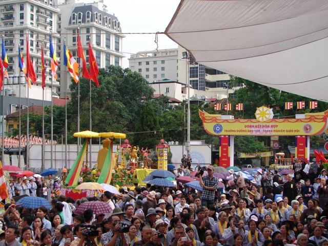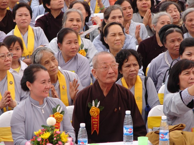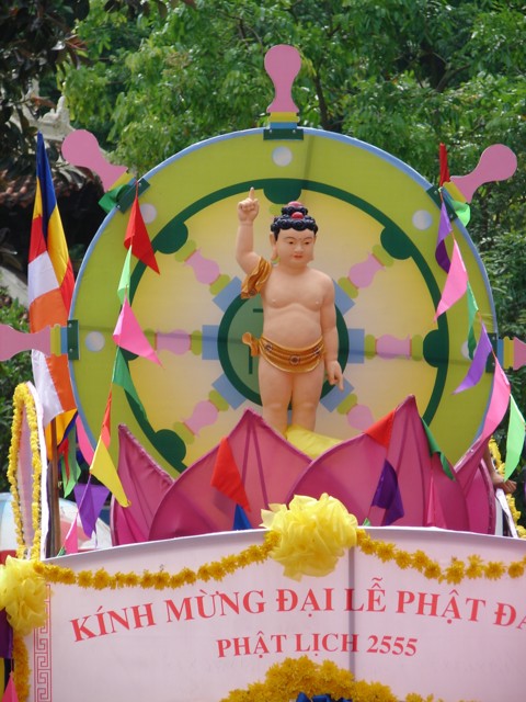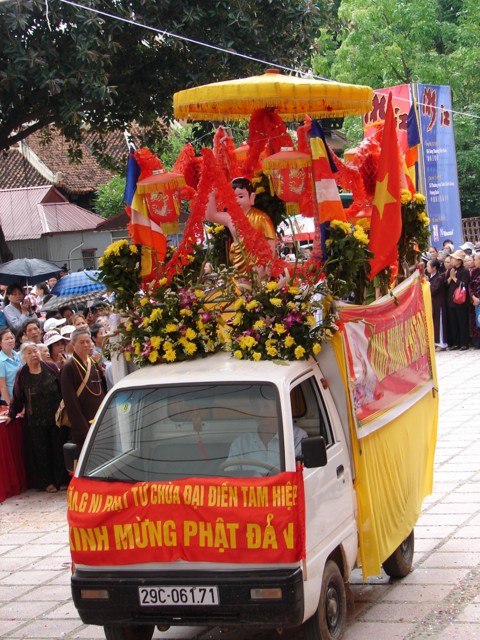 TT. Thích Thanh Nhã đích thân đi diễu hành xe hoa qua lễ đài