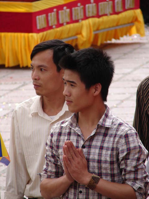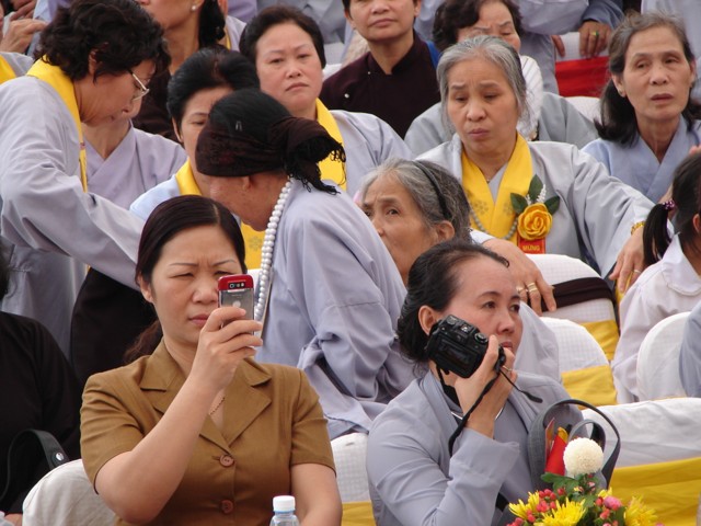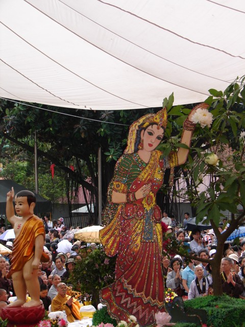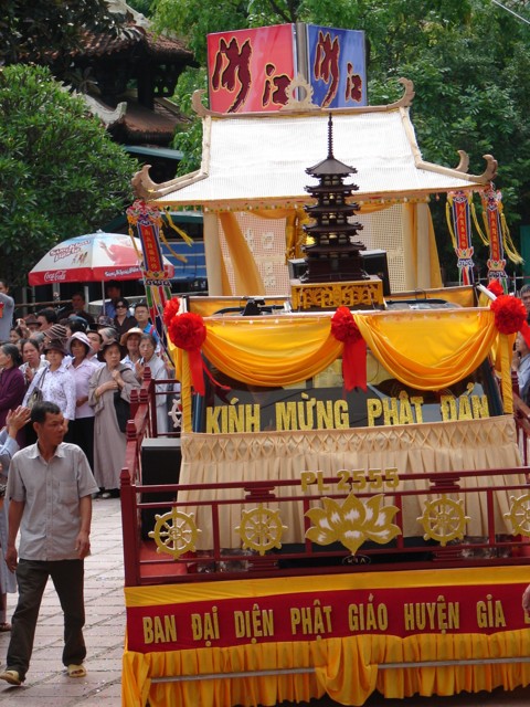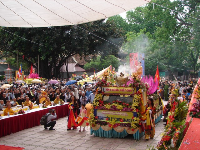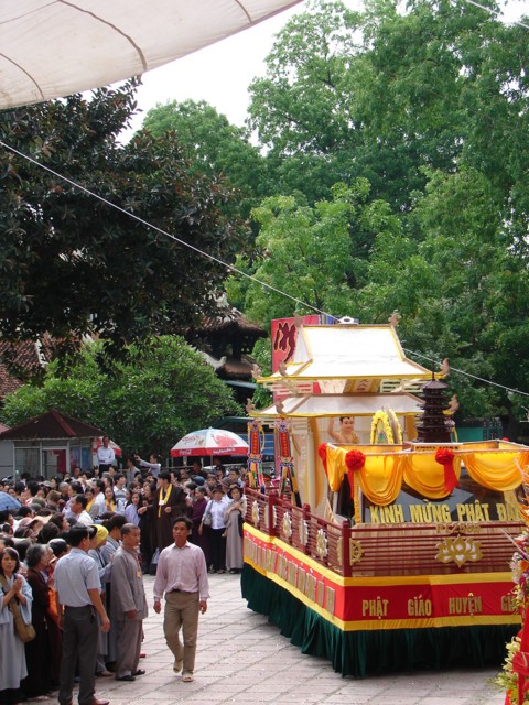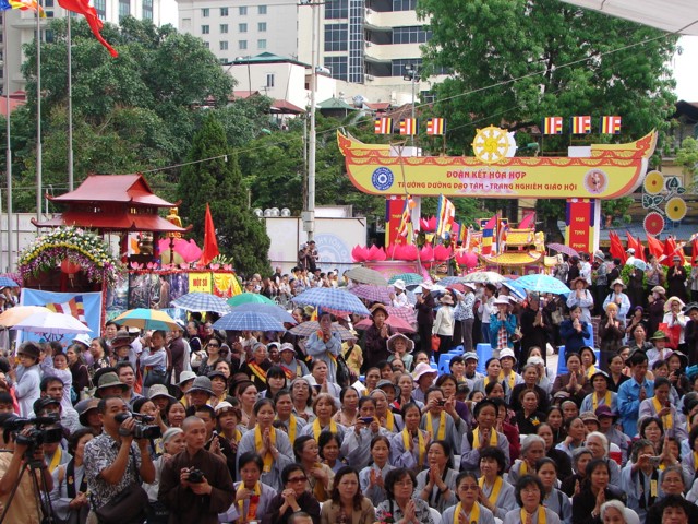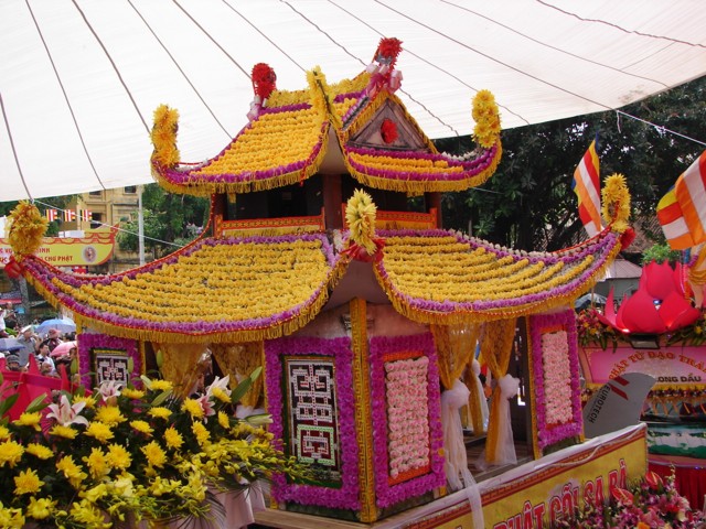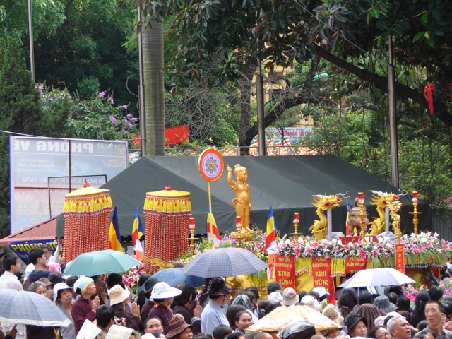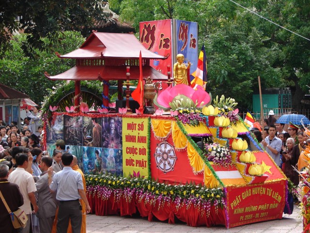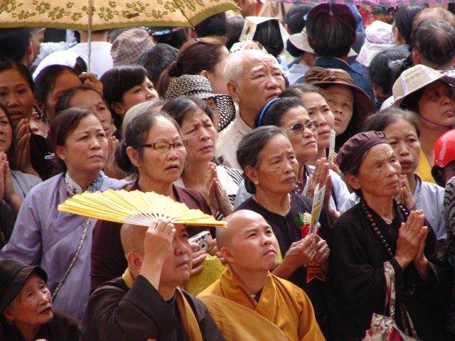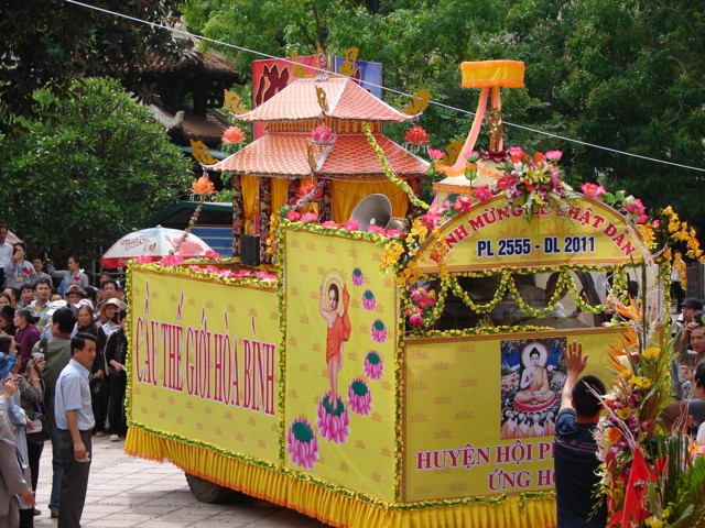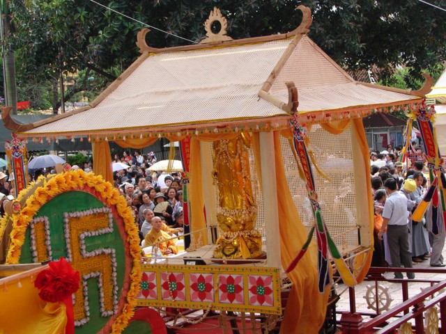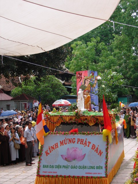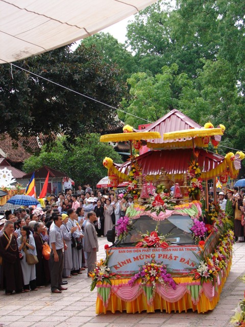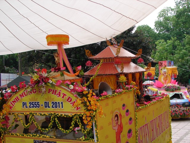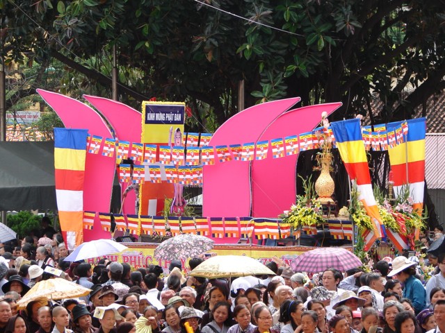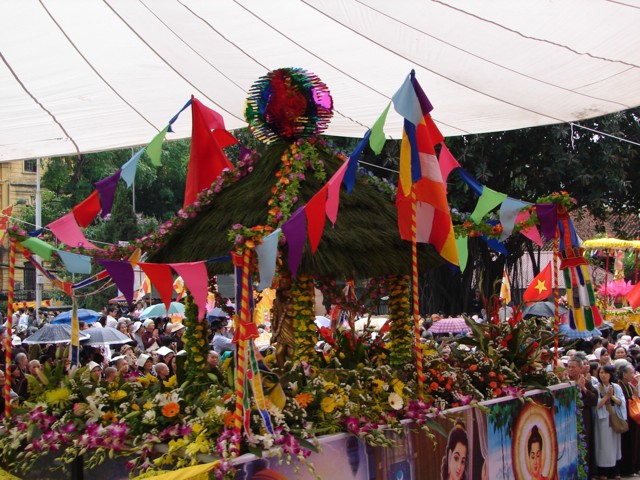 Phật tử chắp tay thành kính khi xe hoa diễu qua lễ đài