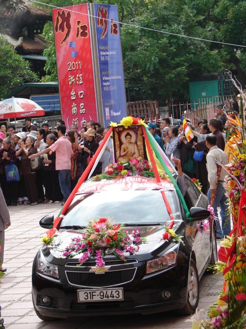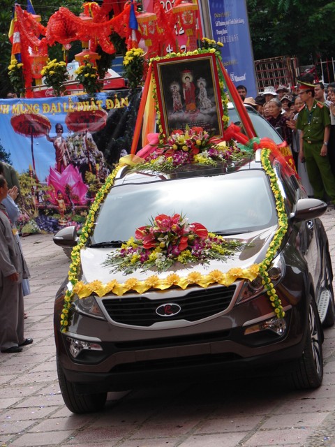Biến xe ô tô con thành xe hoa – vừa dễ làm, vừa tiết kiệm, thể hiện tinh thần Phật đản mạnh mẽ