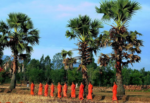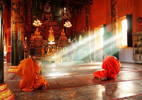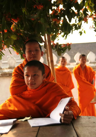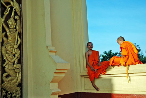 Phút thư giãn của hai vị sư trẻ tại Lào