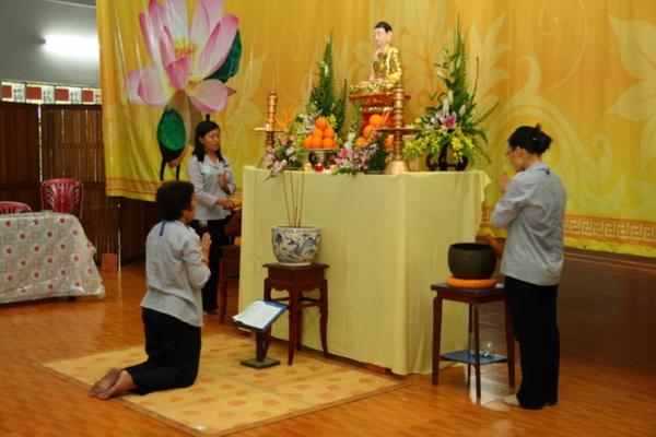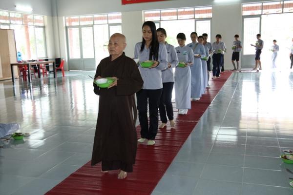 Buổi sáng, các tu sinh được chư tôn đức Tăng Ni hướng dẫn lễ Phật, tụng kinh, thiền hành buổi sáng. Các anh chị tình nguyện viên hướng dẫn những điệu tập thể dục rất đặc trưng. Sau đó, các em được ăn cơm chánh niệm theo dạng cổ Phật khất thực trong tiếng niệm Phật Quan âm. Rồi chương trình chào ngày mới rất hấp dẫn, sôi động.