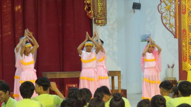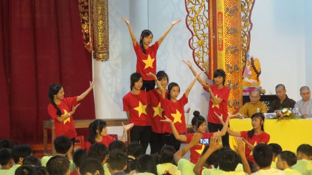 Bằng tài năng và sự sáng tạo của mình, các bạn trẻ thẻ hiện năng khiếu qua các tiết mục văn nghệ như ca hát, múa, kịch, thổi sáo, hoạt cảnh, thiết kế thời trang,… xuay quanh những chủ đề về Phật giáo, cha mẹ, tình yêu quê hương đất nước,… thu hút khán thính giả cho đến tận giây phút cuối cùng của ngày thứ nhất tại khóa tu.