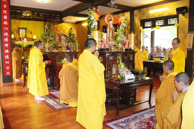 Quang lâm chứng minh và cử hành lễ có HT.Thích Thiện Thành, UV HĐTS GHPGVN, Phó BTS PG tỉnh Quảng Nam; TT.Thích Phước Minh, UV HĐTS, Phó BTS kiêm Trưởng ban GDTN PG tỉnh, Hiệu trưởng trường TCPH Quảng Nam; cùng chư tôn đức Tăng-Ni, Phật tử trong và ngoài huyện Núi Thành, đồng nhất tâm cầu nguyện Giác linh cố Thượng tọa cao đăng Phật quốc.