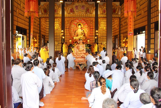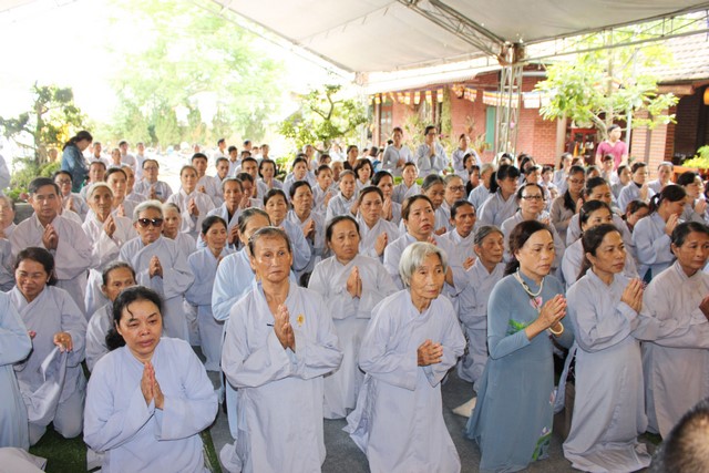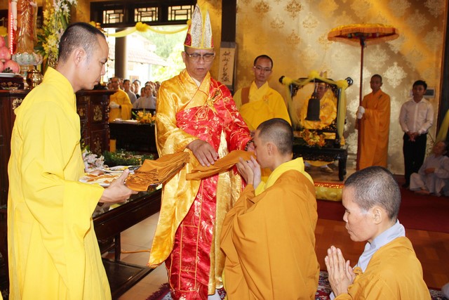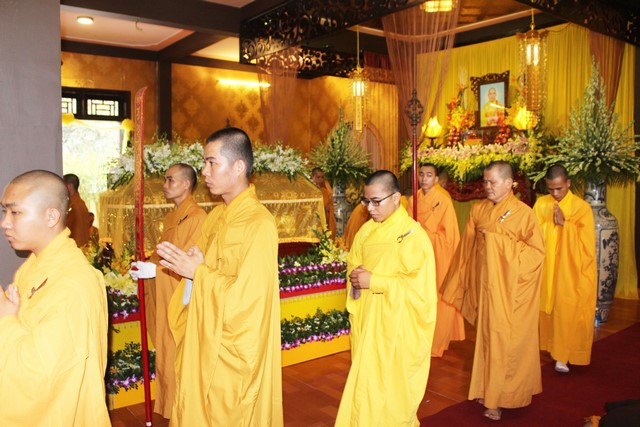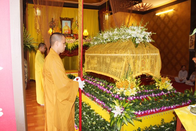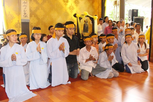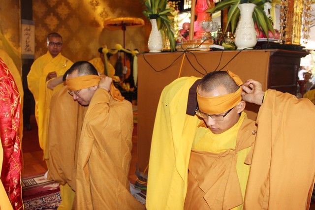 Trong giây phút thọ tang diễn ra lắng đọng, trang nghiêm, môn đồ Pháp quyến đồng hướng về linh ảnh cố Đại đức thành tâm đảnh lễ kính thương sự ra đi đột ngột của thầy, lần lượt mỗi vị đồng thọ tang.