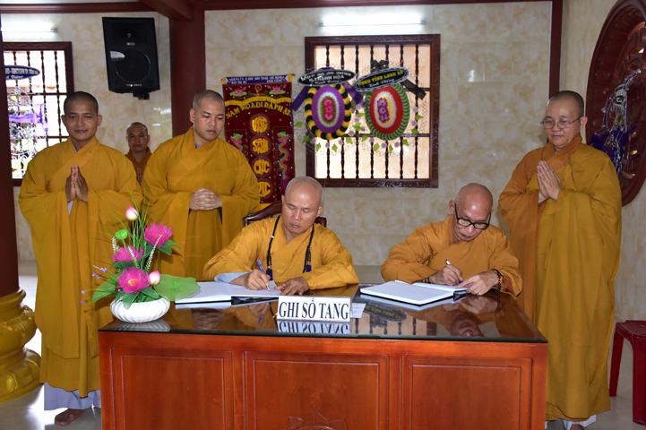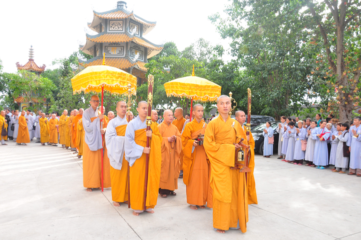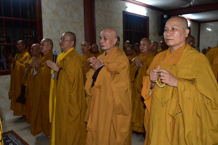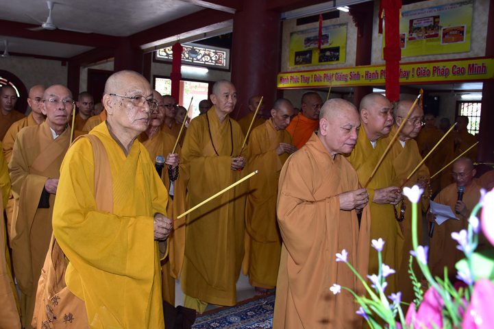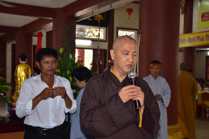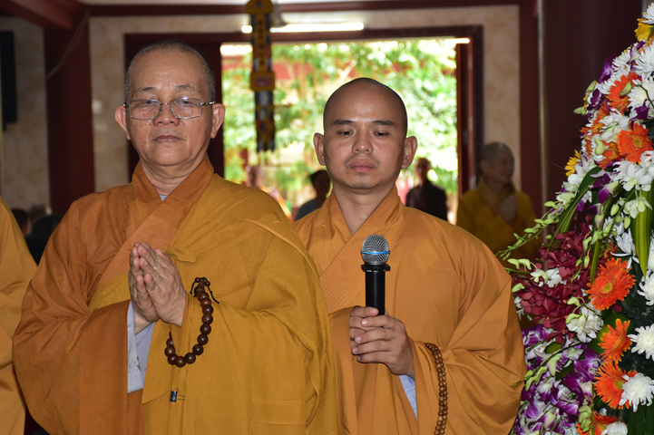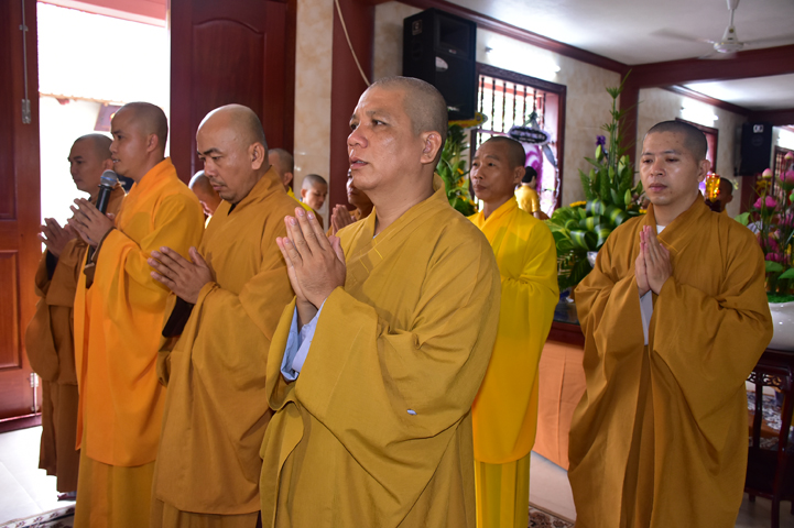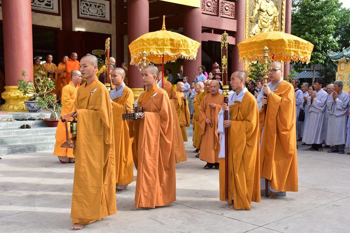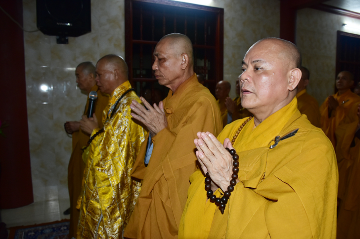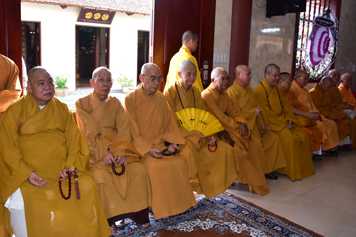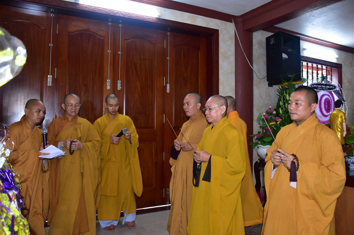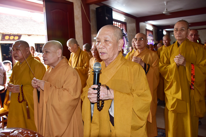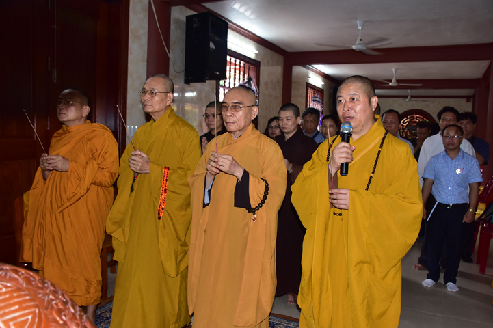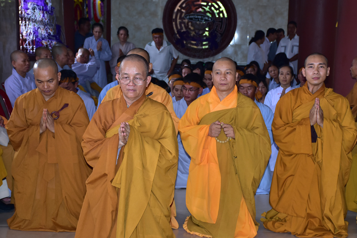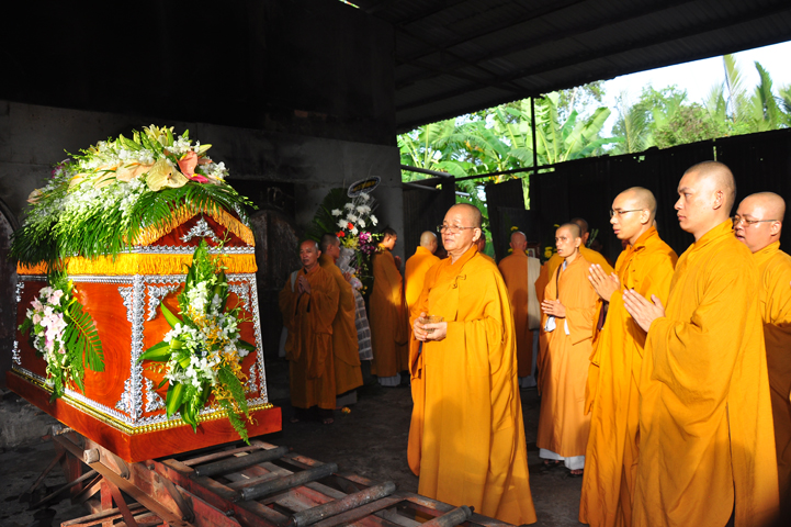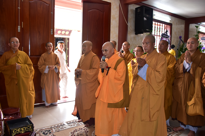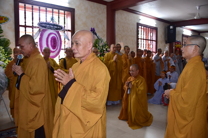 Lúc 4h chiều cùng ngày, lễ cầu nguyện di quan được cử hành trọng thể, với sự chứng minh của Chư tôn đức HĐTS, các ban ngành Trung ương, các BTS và các ban ngành của tỉnh Long An và các huyện, trụ trì các tự viện. Trong đó có, HT Thích Thiện Nhơn – Chủ tịch HĐTS; HT Thích Thiện Pháp – Phó chủ tịch TT HĐTS; HT Thích Giác Uyển – UV TT HĐTS, Phó trưởng ban TT Ban Nghi lễ TW; HT Thích Thanh Hùng – UV TT HĐTS, Phó trưởng ban TT Ban HDPT TW, Phó trưởng ban Hoằng pháp TW; HT Thích Tấn Đạt – UV TT HĐTS, Phó trưởng ban TT ban Hoằng pháp TW, Phó văn phòng 2 TW GH; HT Thích Giác Liêm – Phó trư ban Hoằng pháp TW, Phó văn phòng 2 TW GH; HT Danh Lung – Phó trưởng ban Hoằng pháp TW, Phó văn phòng 2 TW GH; HT Thích Hải Ấn – UV TT HĐTS, Phó trưởng ban TT ban Văn hoá TW, trưởng BTS GHPGVN tỉnh Thừa Thiên Huế ; HT Thích Quang Nhuận – UV TT HĐTS, Phó trưởng ban Văn hoá TW GH; Phó trưởng BTS GHPGVN tỉnh Thừa Thiên Huế; TT Thích Thọ Lạc – UV TT HĐTS, Phó trưởng ban TT ban Văn hoá TW, Trưởng BTS GHPGVN tỉnh Ninh Bình; HT Thích Thiện Huệ – Chứng minh BTS GHPGVN tỉnh Long An; TT Thích Minh Thọ – UV HĐTS, Phó trưởng ban TT BTS GHPGVN tỉnh Long An cùng đông đảo chư tôn đức Tăng Ni và các đạo tràng Phật tử các nơi,
