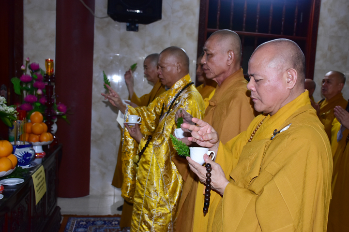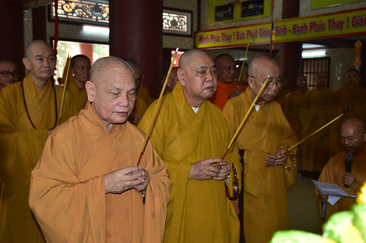 Sau đó, Chư tôn Hoà thượng đã niêm hương và chú nguyện trong nghi thức di quan.