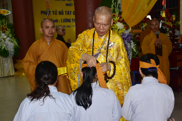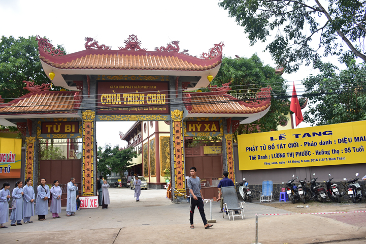 Lúc 9h tối ngày 18/8/2016 (16/7/ âm lịch), tại chùa Thiên Châu, lễ nhập quan cho Ưu bà di Bồ tát giới Diệu Mai, nhũ danh Lương Thị Phước, hưởng đại thọ 95 tuổi. Sám chủ là HT Thích Phước Toàn – UV Ban Văn hoá TW, Viện chủ chùa Vạn Đức – quận Bình Tân; có sự chứng minh của HT Thích Thanh Hùng – UV TT HĐTS, Phó trưởng ban TT Ban HDPT TW, Phó trưởng ban Hoằng pháp TW; HT Thích Tấn Đạt – UV TT HĐTS, Phó trưởng ban TT ban Hoằng pháp TW, Phó văn phòng 2 TW GH; HT Thích Thiện Huệ – Chứng minh BTS GHPGVN tỉnh Long An; HT Thích Chơn Đạo – Giáo thọ Trường TCPH Long An; TT Thích Quảng Tâm – Phó trưởng BTS GHPGVN tỉnh Long An; ĐĐ Thích Lệ Trí – UV HĐTS, Chánh thư ký kiêm trưởng ban Hoằng pháp GHPGVN tỉnh Long An cùng chư tôn thiền đức Tăng Ni và đông đảo Phật tử.