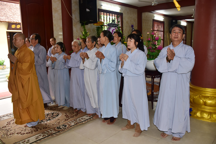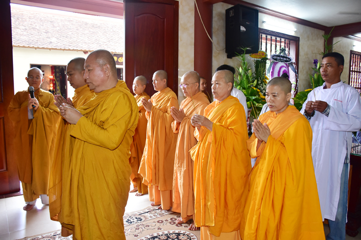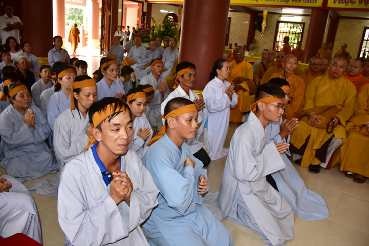 HT Thích Minh Thiện – UV HĐTS, Phó trưởng ban Hoằng pháp TW, Trưởng BTS GHPGVN tỉnh Long An, hiếu nam của cụ bà đã tác bạch cung thỉnh Hoà thượng sám chủ cùng chư tôn đức quang lâm lễ đường để cử hành lễ nhập quan cho cụ bà Diệu Mai. Lễ nhập quan được cử hành trang nghiêm. Sau đó là nghi thức thọ tang cho hiếu quyến.
