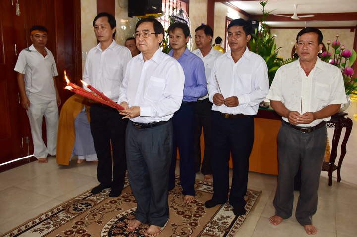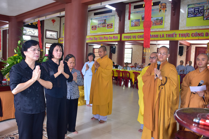 Lúc 8h sáng, phái đoàn của Thường trực BTS GHPGVN tỉnh Long An, Ban giám hiệu, ban giáo thọ và Tăng Ni sinh các khoá của trường TCPH Long An; BTS GHPGVN Tp Tân An và các tự viện tại Tp Tân An đã đến cầu nguyện và phân ưu.
