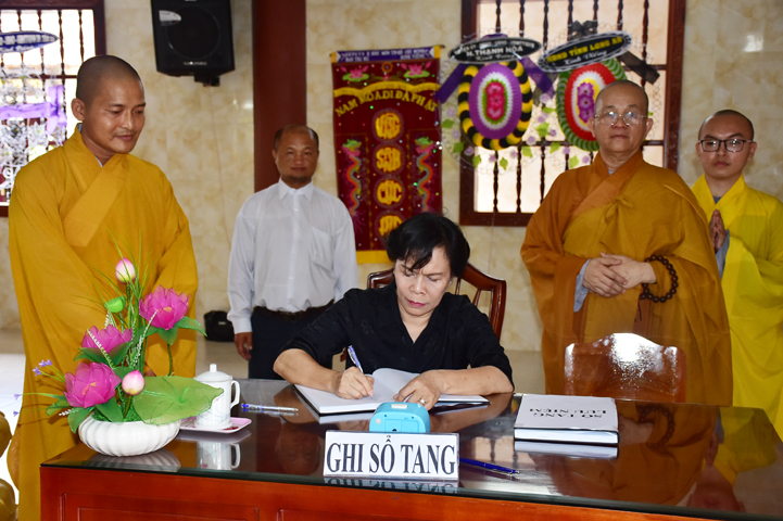 Từ sáng sớm, trong tang lễ, các phái đoàn của Chư tôn đức các ban ngành, các tổ đình, chùa, tịnh xá, tịnh thất, niệm Phật đường…đã quang lâm liên tục để thấp hương tưởng niệm và cầu nguyện. Trong lễ viếng, các cơ quan lãnh đạo của tỉnh Long An, thành phố Tân An, các huyện cũng đến kính viếng và phân ưu vô cùng đông đảo; thân bằng quyến thuộc, bà con xa gần cũng đã đến viếng đông đảo.
