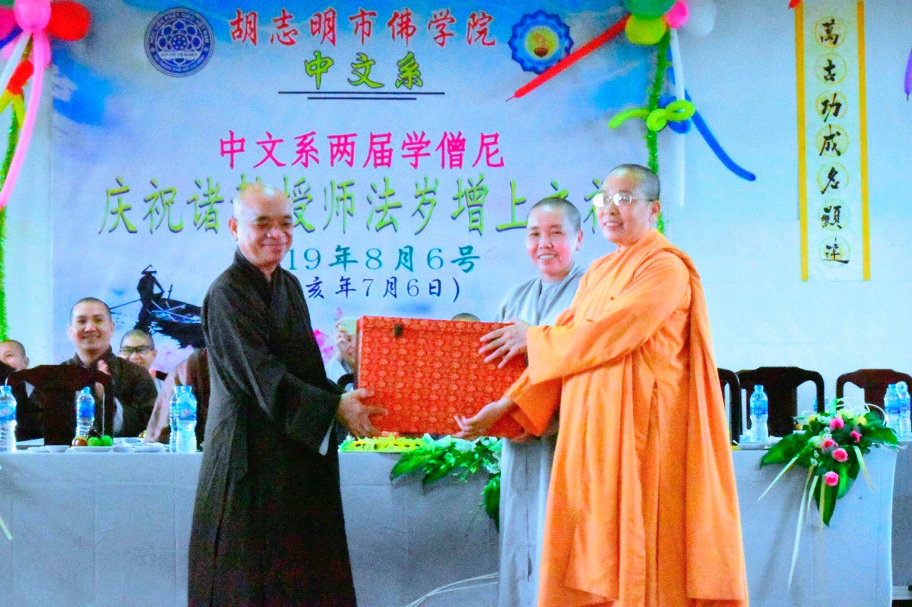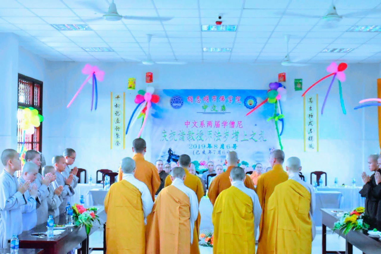 Sáng ngày 06/08/2019(nhằm ngày 06/07/ÂL, tại giảng đường 301 HVPGVN tại TP.HCM đã diễn ra lễ khánh tuế của Tăng Ni sinh đến chư tôn đức Giáo thọ sư khoa Trung văn HVPGVN tại TP.HCM