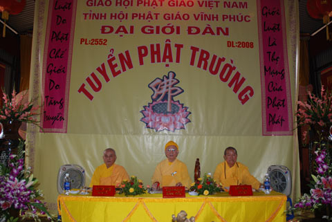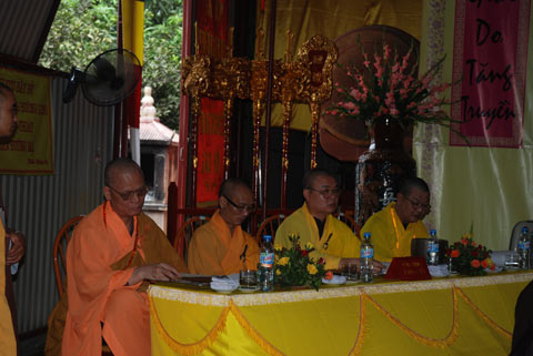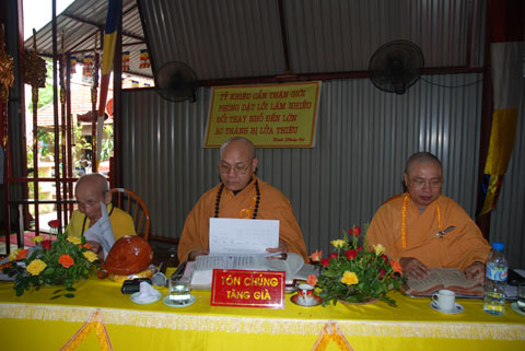 Các ngôi tôn chứng sư có chư Tôn đức phó chủ tịch HĐTS: TT. Thích Thanh Nhiễu; TT. Thích Quảng Tùng cùng chư tôn đức ủy viên thường trực HĐTS GHPGVN: TT. Thích Thanh Duệ – Trưởng BTS THPG Vĩnh Phúc; TT. Thích Thanh Điện, TT. Thích Thanh Giác, TT. Thích Thanh Hưng.
