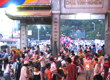 17h, cổng chùa Vĩnh Nghiêm đã đông nghịt người đi lễ