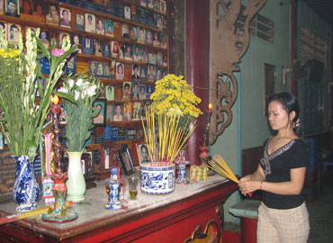 Nhiều khách đến chùa thắp hương tưởng nhớ người thân