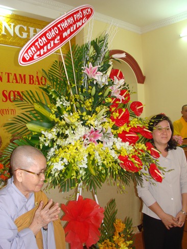 Quang lâm chứng minh có chư tôn giáo phẩm HT. Thích Thiện Tánh, Trưởng Ban Kiểm soát HĐTS, Phó Ban Thường trực BTS GHPGVN TP.HCM, HT. Thích Tịnh Hạnh – Ủy viên HĐTS, Phó BTS GHPGVN TP.HCM cùng chư tôn đức Tăng, Ni trưởng, Ni sư các tự viện cùng các cấp lãnh đạo chính quyền trong thành phố và chính quyền sở tại cùng đông đảo Phật tử về tham dự.
