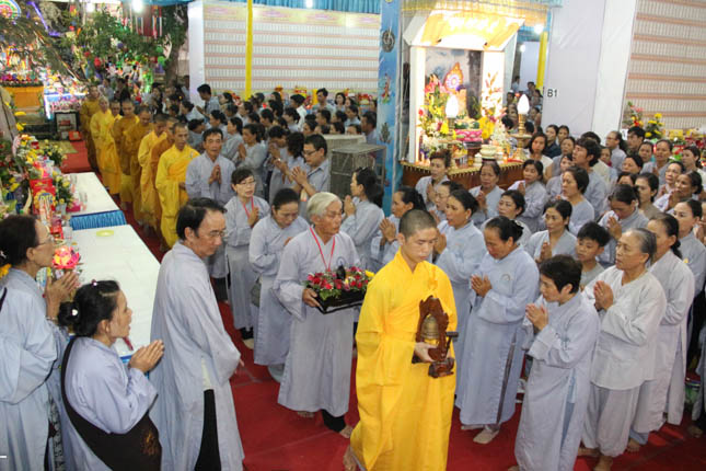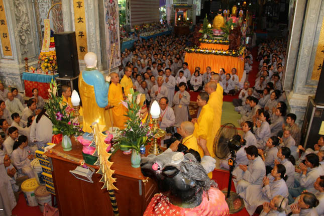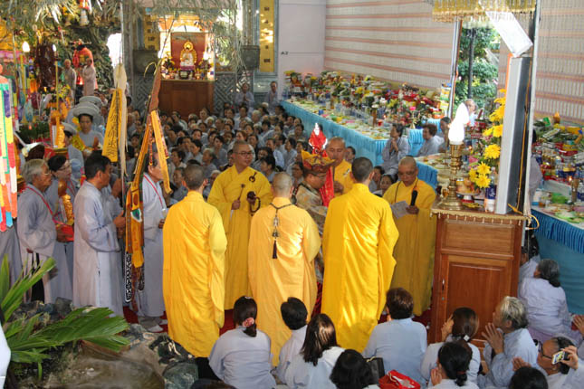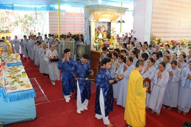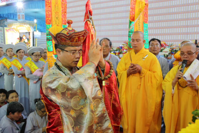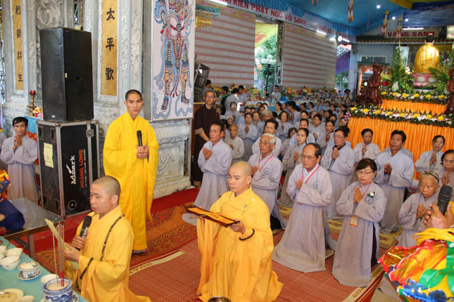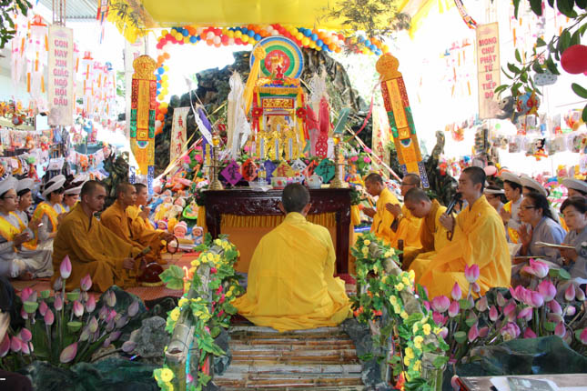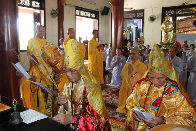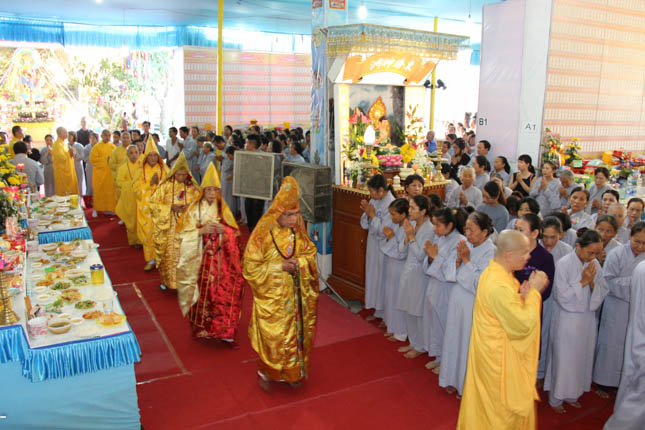 TT. Thích Minh Thành – Trưởng ban nghi lễ GHPGVN Tp Đà Nẵng đương vi sám chủ đại lễ; ĐĐ. Thích Quảng Minh – UV BTS GHPGVN Tp Đà Nẵng đương vi công văn đại lễ cùng Chư Đại đức ban kinh sư đã tiến hành nghi lễ với sự tham dự của hàng ngàn đạo hữu Phật tử.