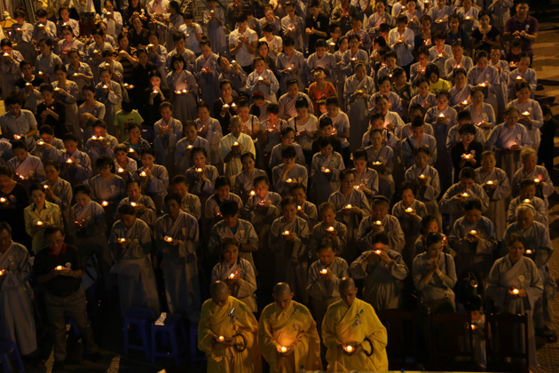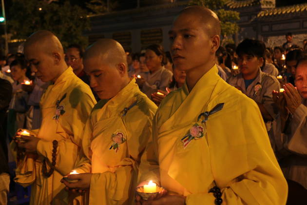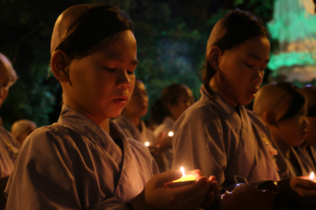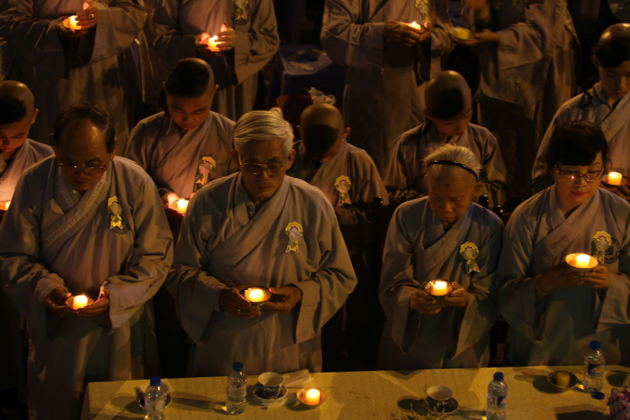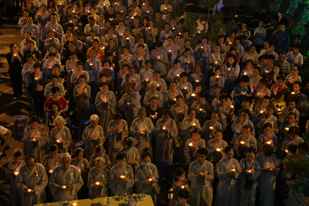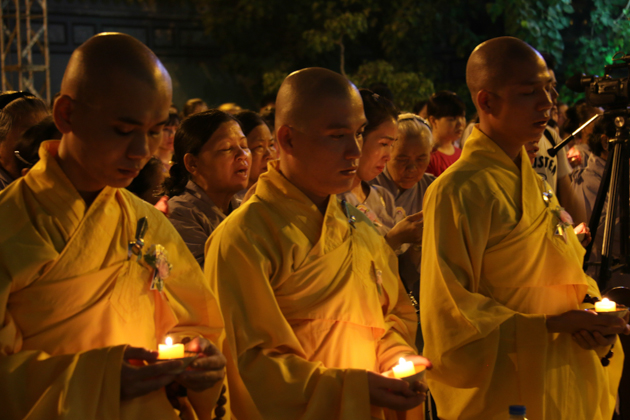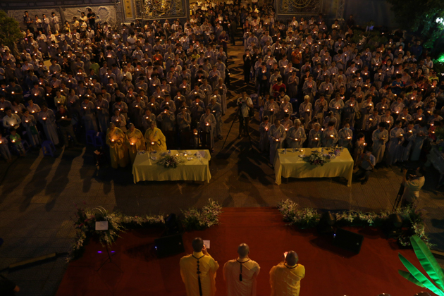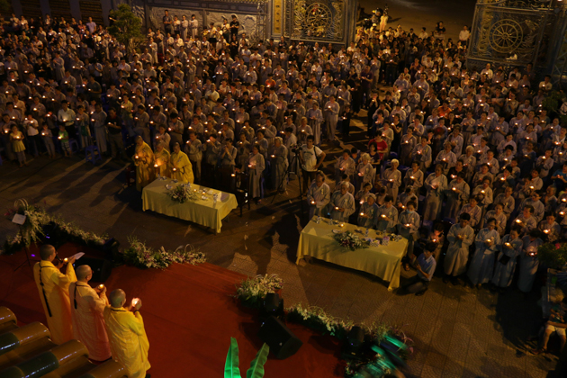 Gần hai ngàn ngọn nến lung linh được thắp sáng nơi sân chùa Bà Đa. Lời phát nguyện được cất lên như sưởi ấm con tim những người Mẹ.