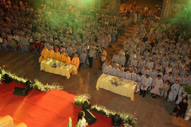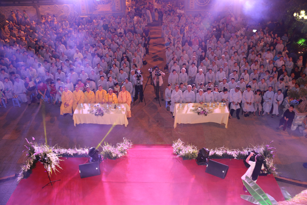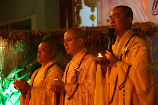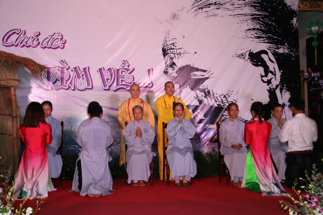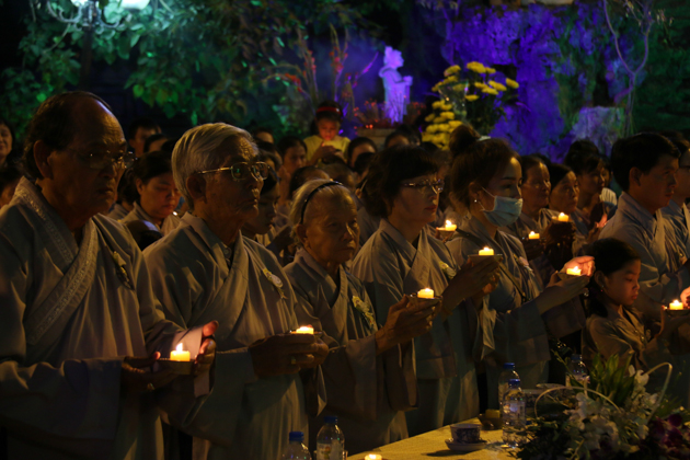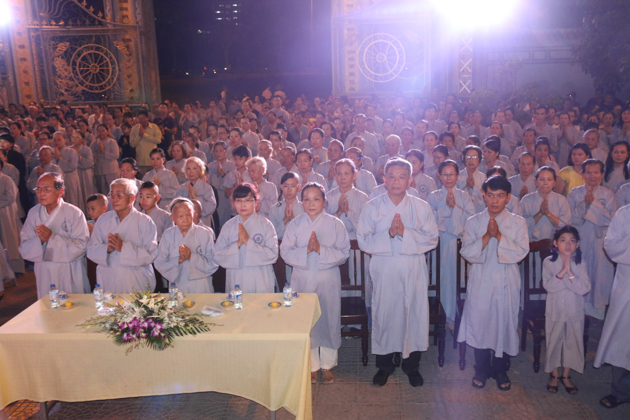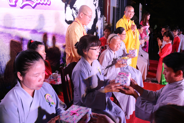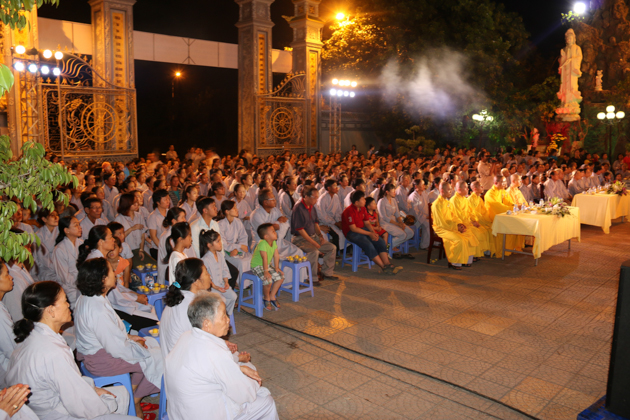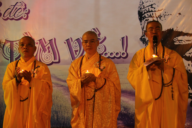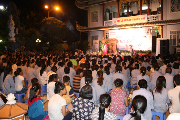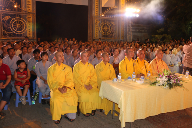 Buổi lễ xen lẫn với các tiết mục biểu diễn văn nghệ của các ca sĩ đến từ Hội nghệ sĩ Phật tử Tp Đà Nẵng tạo cho đêm lễ hội một không khí khác biệt với những vui buồn lẫn lộn.