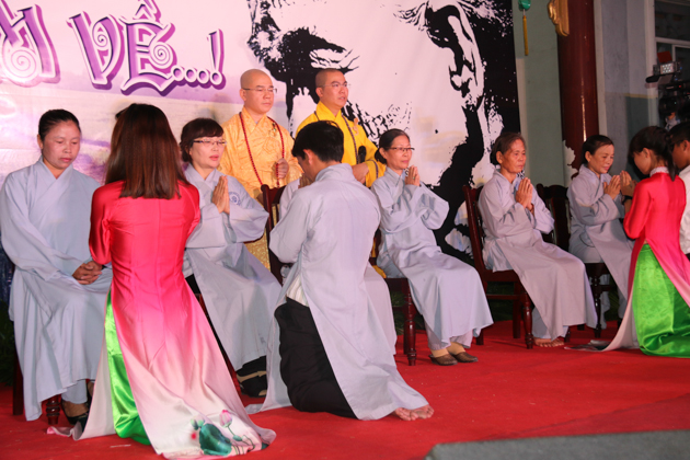 Trong không khí thiêng liêng và xúc động, ĐĐ. Thích Thông Đạo cùng ĐĐ. Thích Nguyên An và một vài Phật tử đại diện cho những người con có mặt tại lễ hội dâng lên những người Mẹ thân thương những lời tâm sự bộc bạch nổi lòng cũng như những lời sám hối cho các lỗi lầm đã gây ra phiền muộn cho người Mẹ đáng kính.