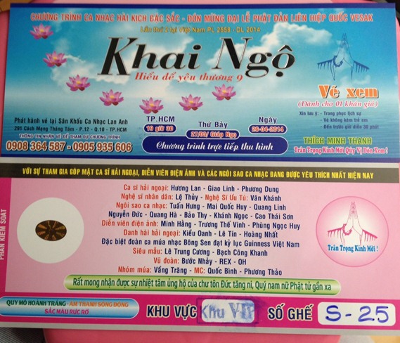 BTC rất mong được sự nhiệt tâm ủng hộ của chư tôn đức Tăng Ni, quý Phật tử gần xa. Vé được phát hành miễn phí xin liên hệ ĐĐ. Thích Minh Thanh để nhận vé; 0908.364.587 – 0905.935.606