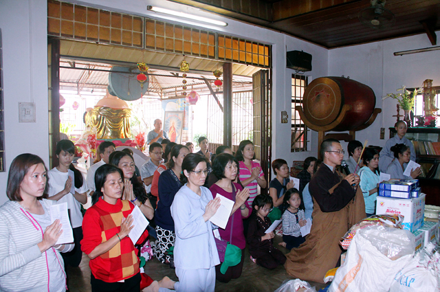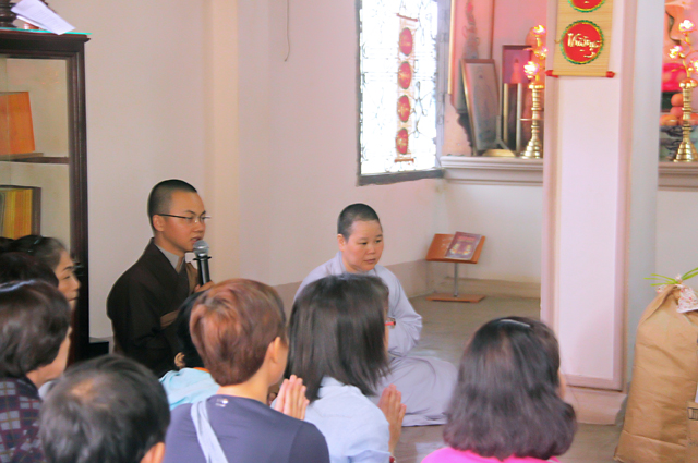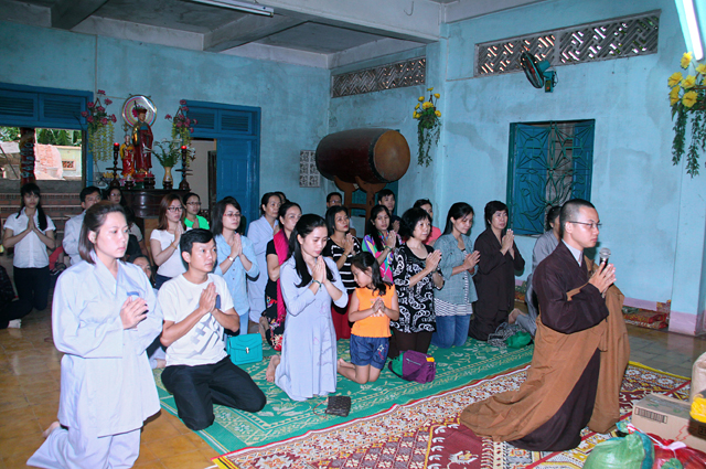 Thầy Lệ Bình đã hướng dẫn đoàn đảnh lễ Tam Bảo, tụng một thời kinh và có đôi lời trao đổi cùng Ni Sư trú trì nơi đã cưu mang những mảnh đời bất hạnh, Ni Sư đã tâm sự: là một thân phận trẻ mồ côi nên hiểu lắm, thương lắm những mảnh đời bất hạnh, sinh ra thiếu vòng tay chăm sóc yêu thương của cha của mẹ. Nên dù gặp nhiều khó khăn vẫn cố gắng cưu mang các con mong các con khôn lớn trở nên người hữu dụng, hay có thể tiếp nối Ni Sư trở thành những vị sứ giả Như Lai mang yêu thương đến với muôn loài.