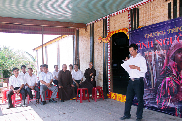 Thay Mặt cho đoàn Hòa thượng có đôi lời chia sẻ đến bà con dân làng, cầu mong bà con có nhân lành kết duyên cùng Phật Pháp, biết cải tiến cuộc sống để mai này có cuộc sống tốt đẹp hơn. Đồng thời, Hòa thượng cũng gởi lời cảm ơn các cấp chính quyền địa phương đã tạo điều kiện giúp đỡ cho các đoàn từ thiện về địa phương thăm và trao quà đến bà con nghèo, nhất là nhân ngày 30-04 ngày giải phóng Miền Nam, được về một làng là căn cứ Cách mạng kháng chiến xưa.